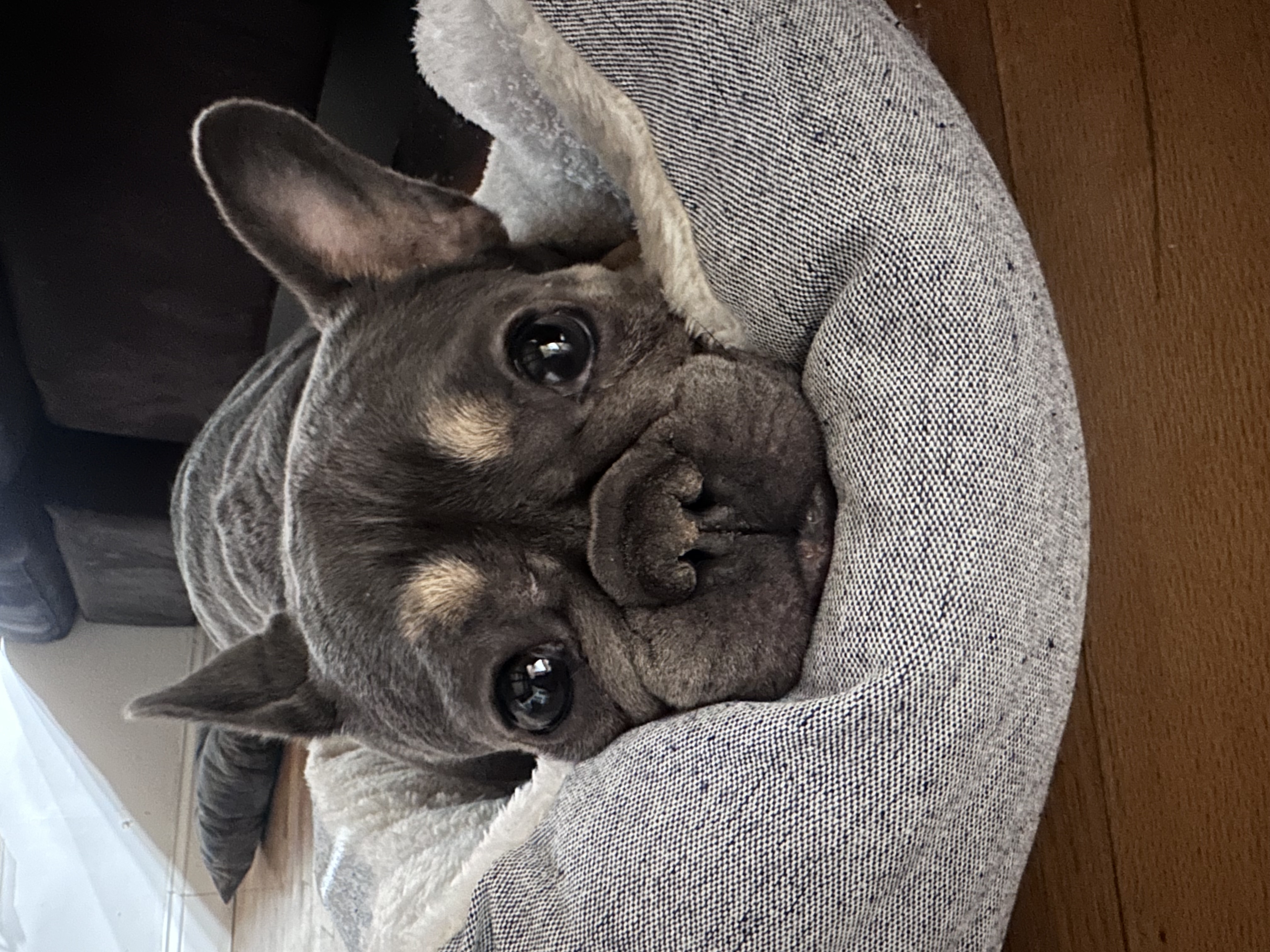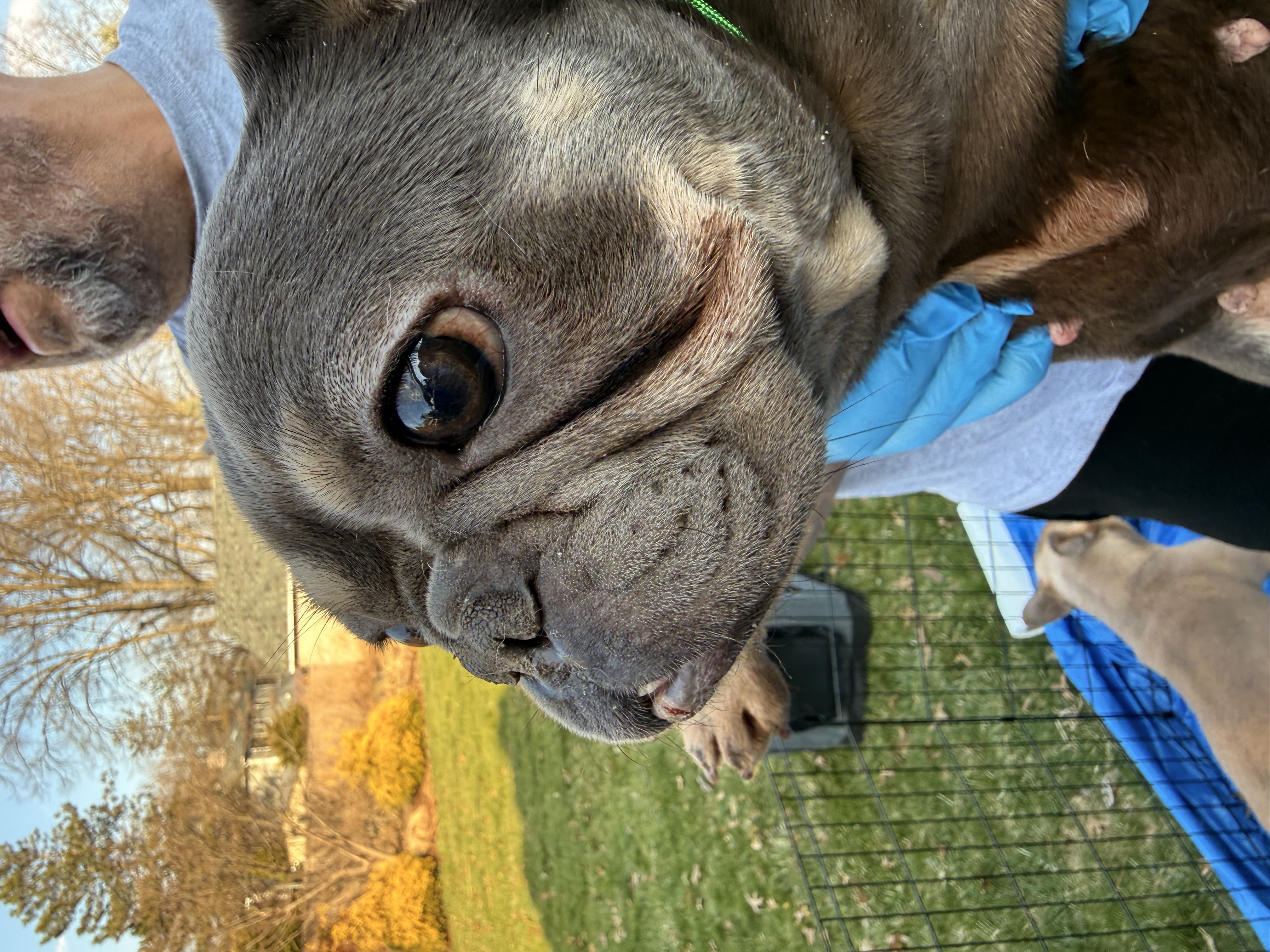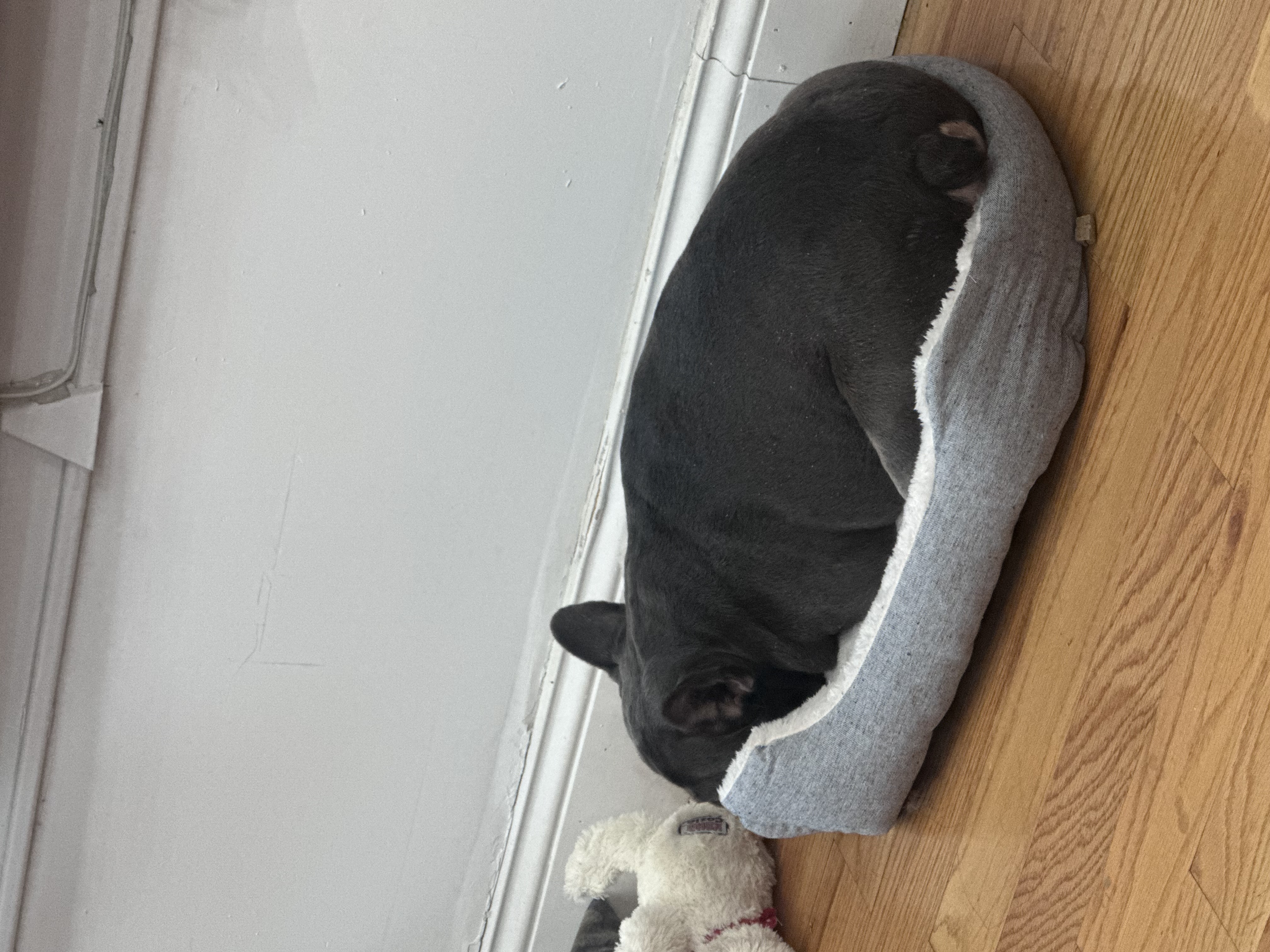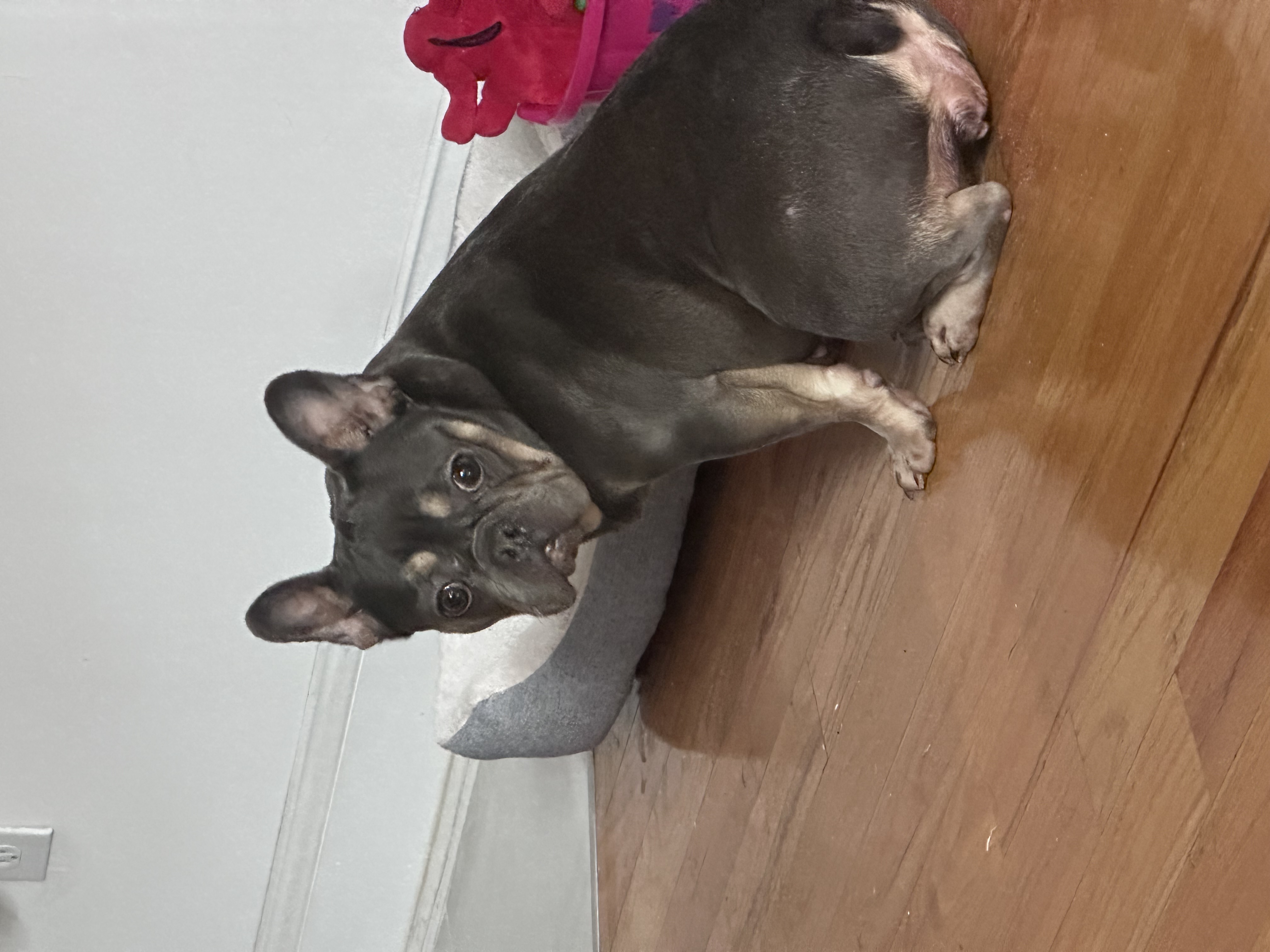 Personality: Tien is a calm, easygoing couch potato who loves nothing more than lounging and snoozing the day away. She enjoys relaxing in a cozy spot and is happiest when she’s settled in and comfortable. One of her favorite pastimes is chewing on her bully sticks, which keeps her content and occupied. She has a laid-back personality that makes her the perfect low-key companion.
