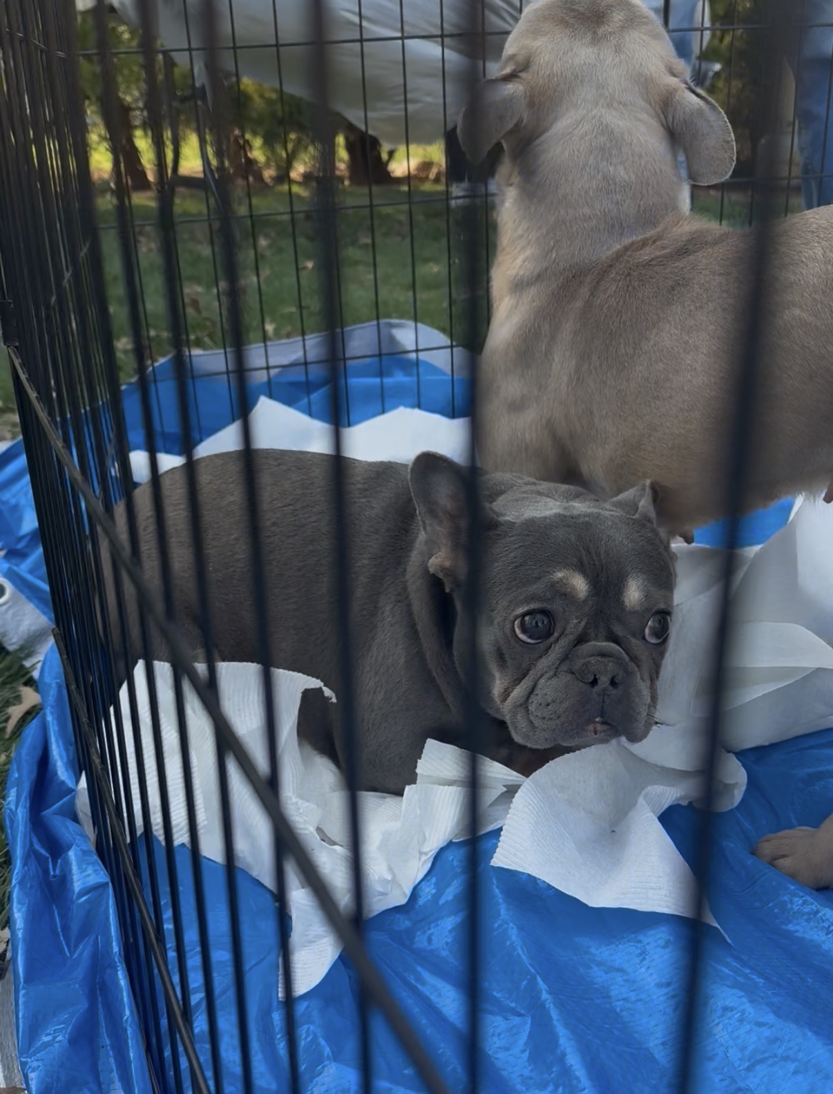 Training: Tien currently sleeps in her pen area, where she is settling in nicely. She is still working on leash walking and will benefit from continued patience and gentle guidance as she builds confidence. House training is also a work in progress, and with consistency, routine, and positive reinforcement, she will continue to make great progress.