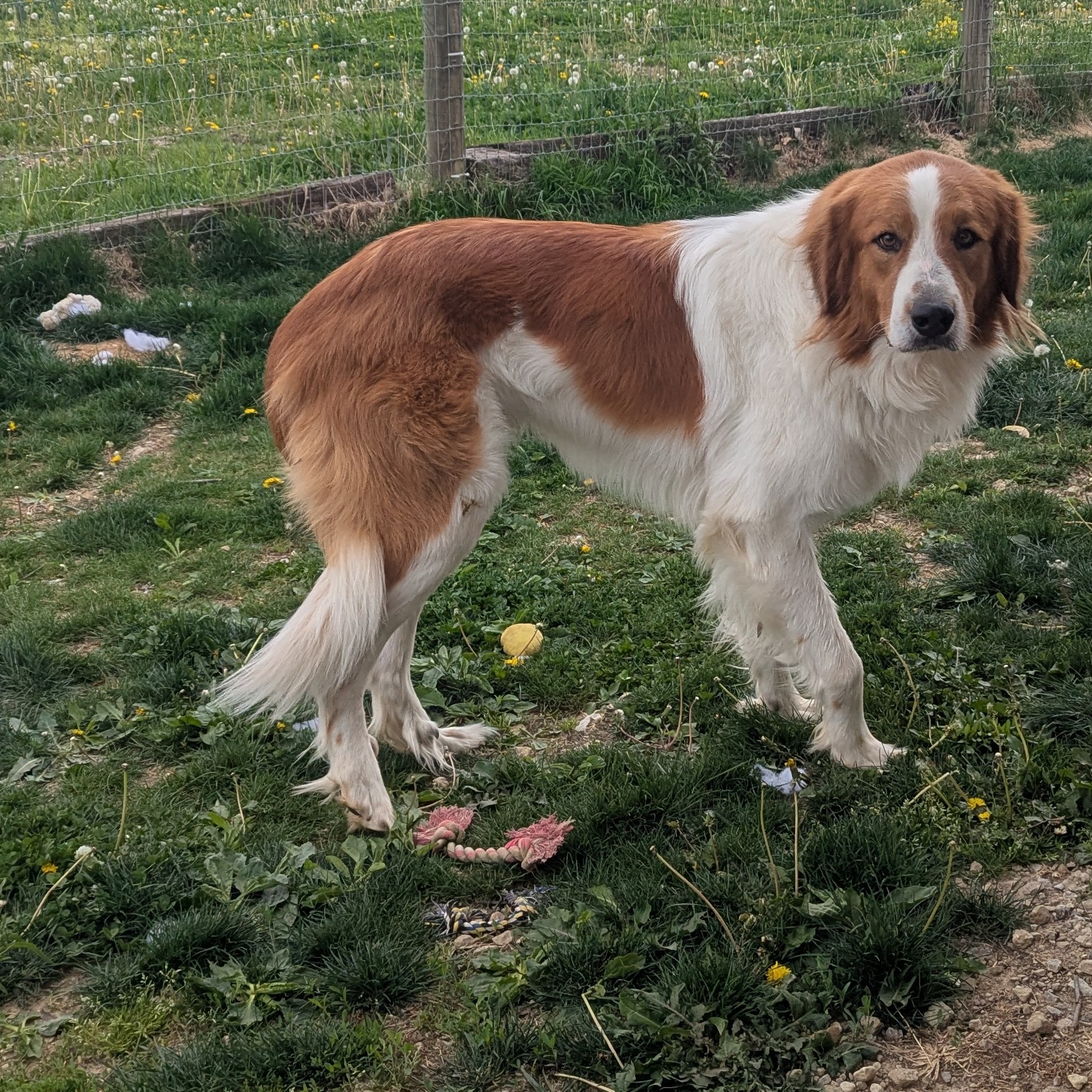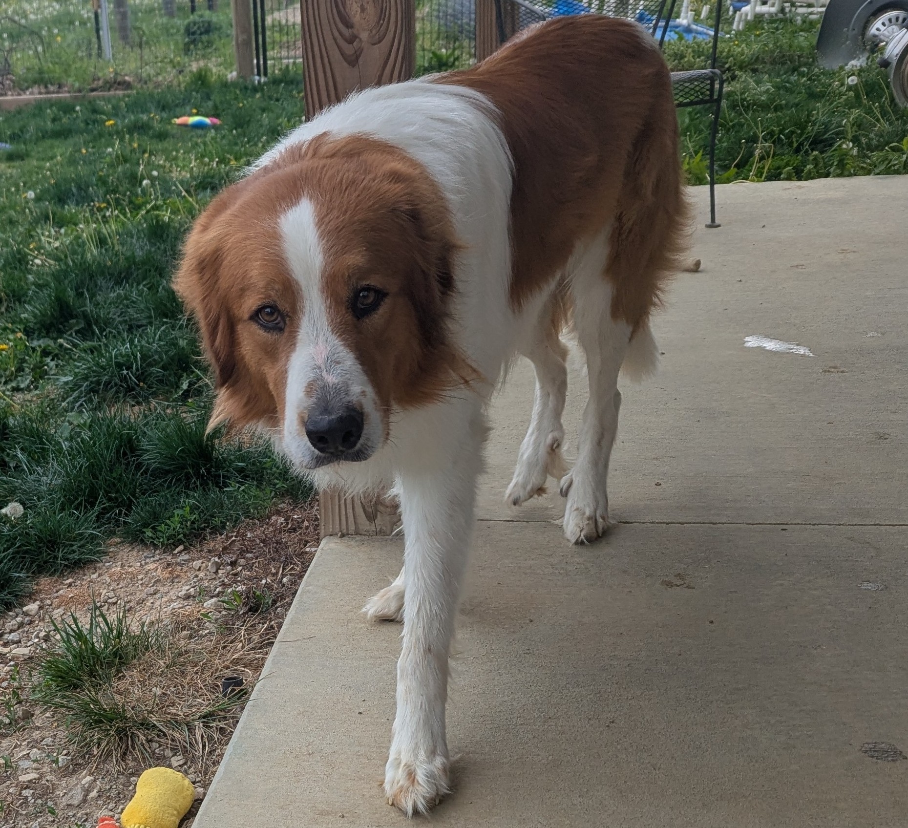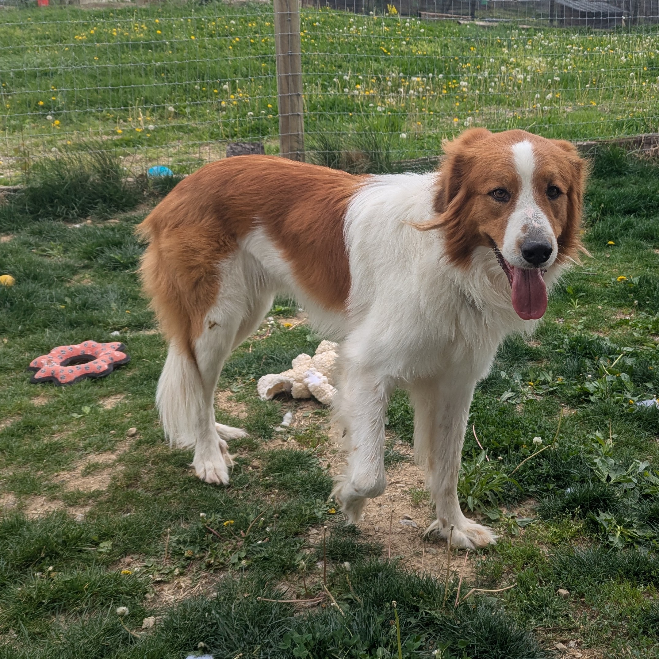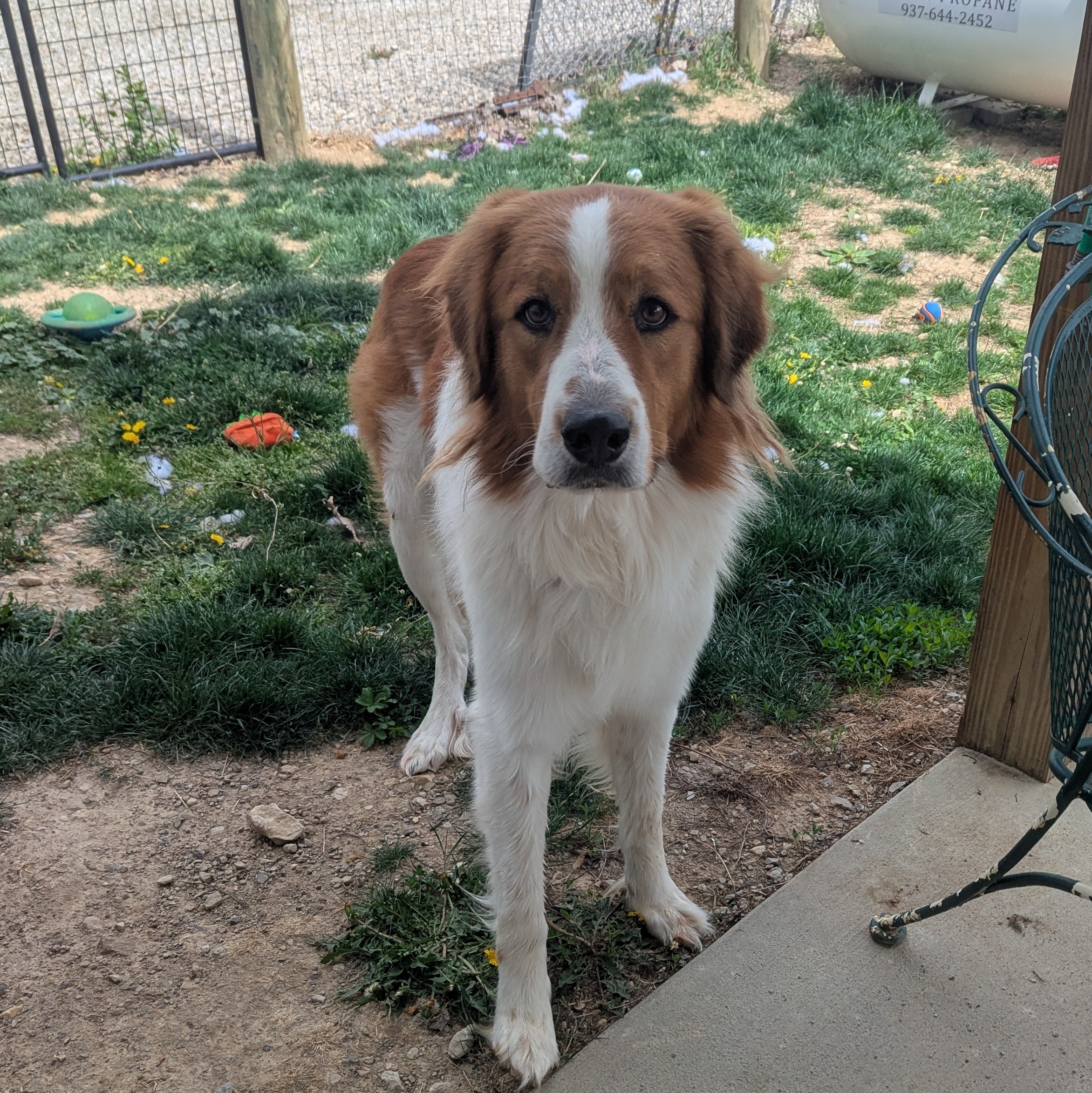 Hopper is a 4-year-old, 79 lb mixed breed with a soft coat and an even softer heart. While he was originally thought to be a Great Pyrenees/Bernese Mountain Dog mix, we believe he may have some Collie in there as well — whatever the mix, he’s 100% a sweet, gentle soul.