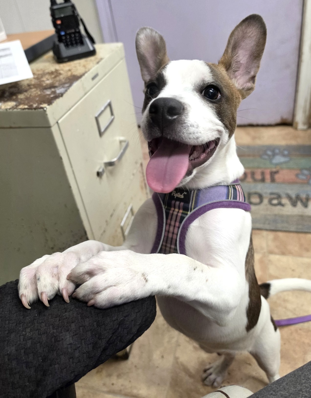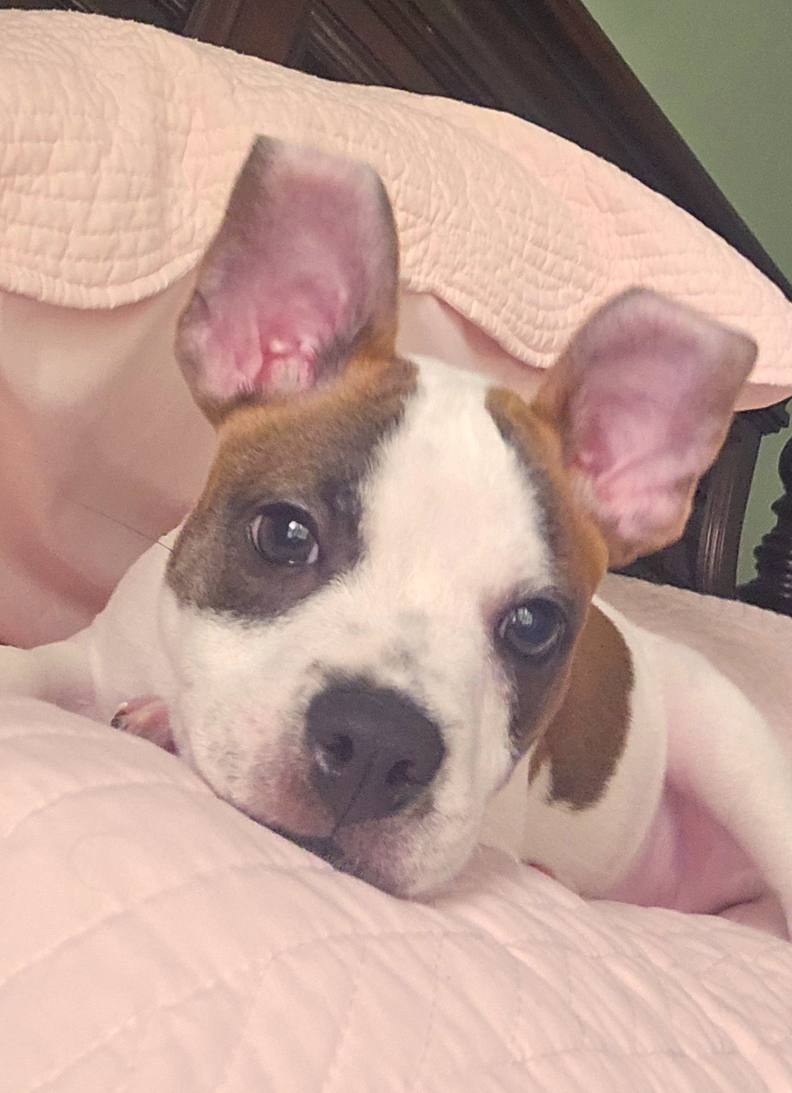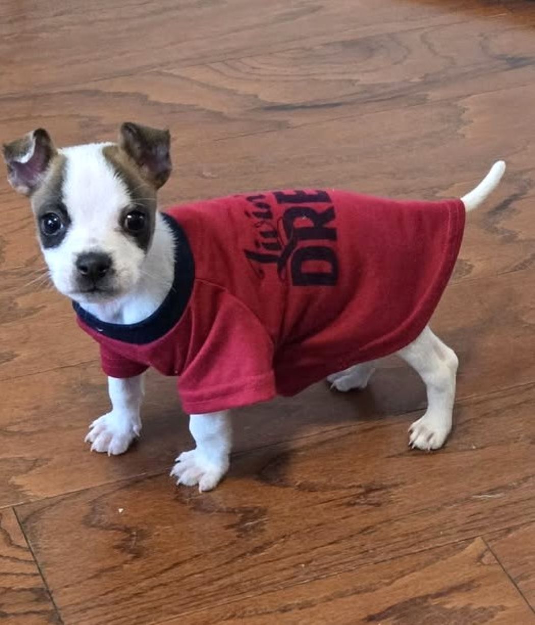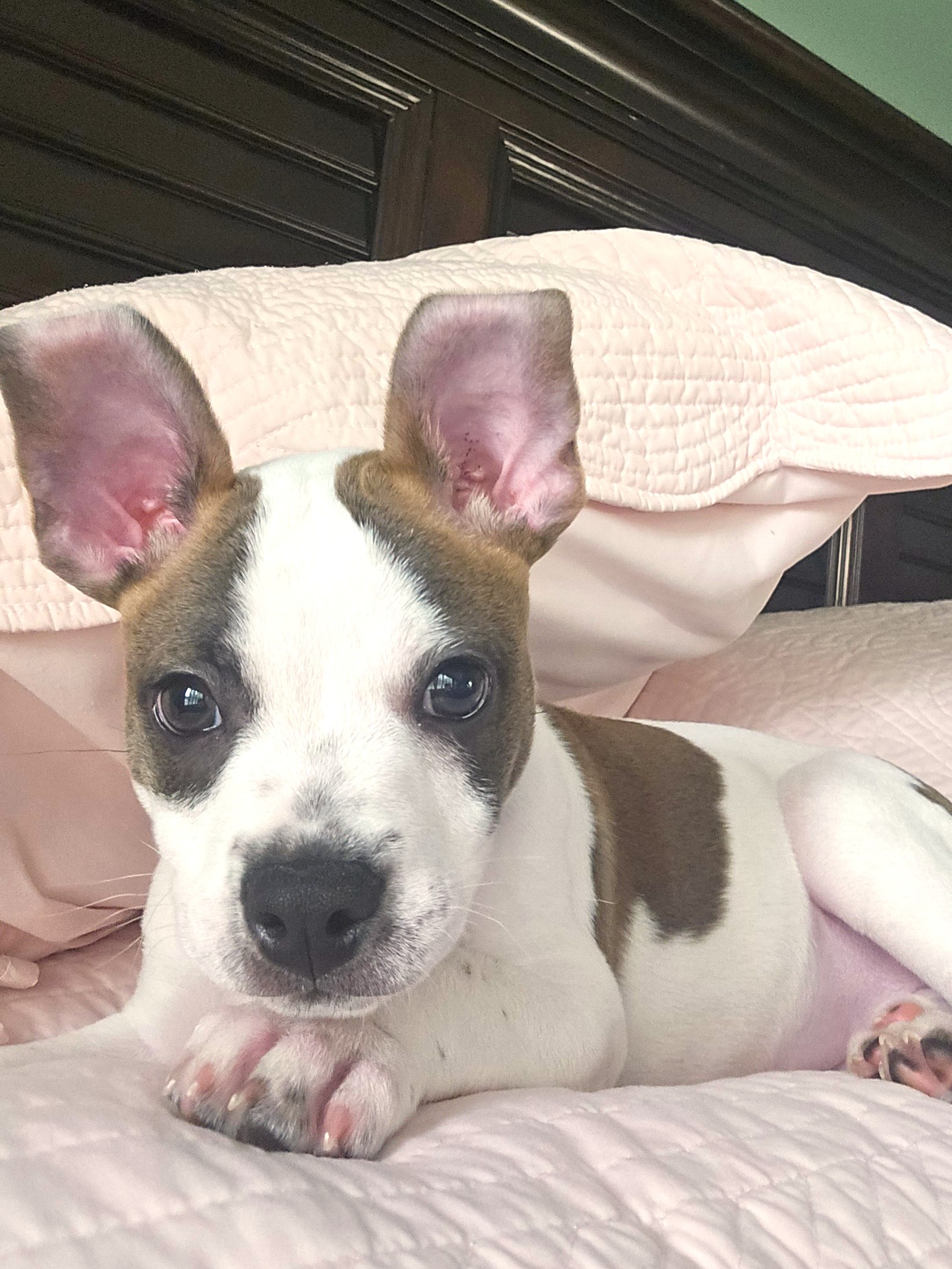 Poor little Gizmo was dumped at just 2 weeks old with no momma or siblings - he barely had teeth! Luckily, a good Samaritan saved him and he Facebooked his way into our rescue. Talk about a spunky little boy! Gizmo has no fear and is a very active, sweet puppy with a huge personality. He has thrived while in foster, gaining weight and learning his social skills. He's learning to play with the foster siblings as long as they tolerate him - puppy energy is not their thing. Mostly he gets by with playing with his chewys, his human, and ALL of the toys. He just starting to work on potty training, but does use papers or washable rugs pretty well. He is used to be confined in a small room, but not in a crate.