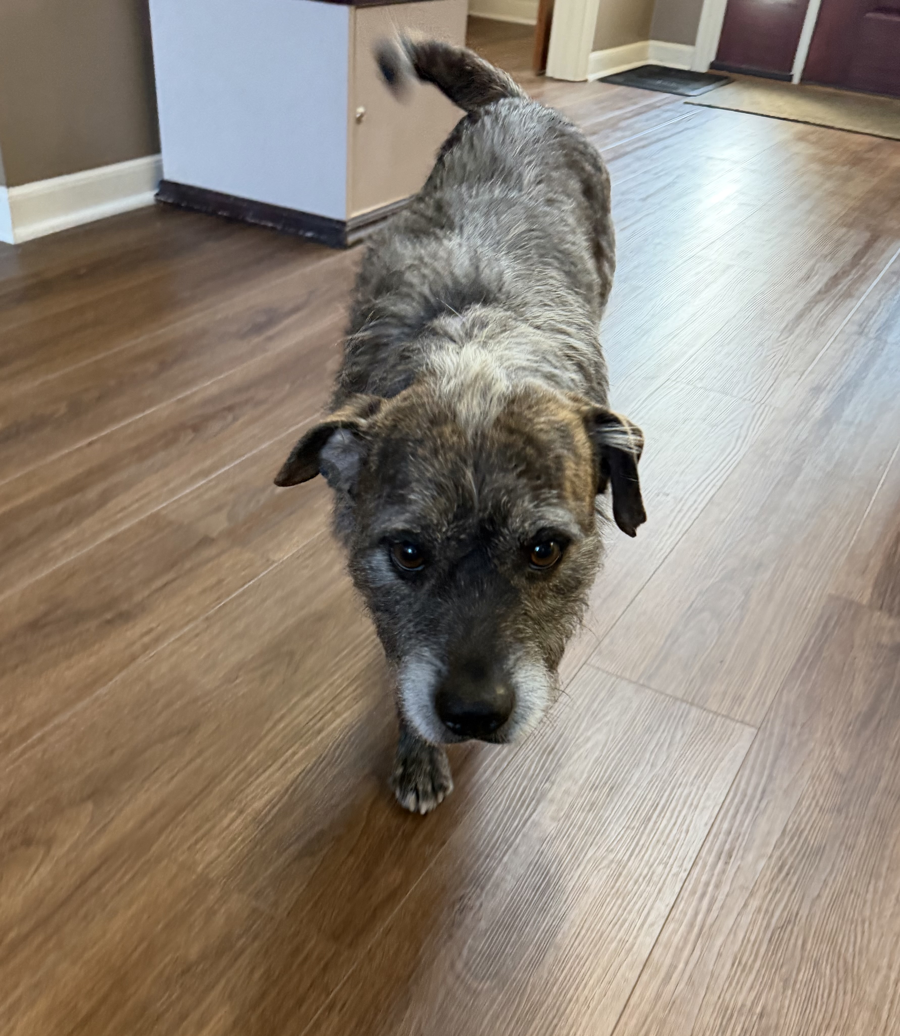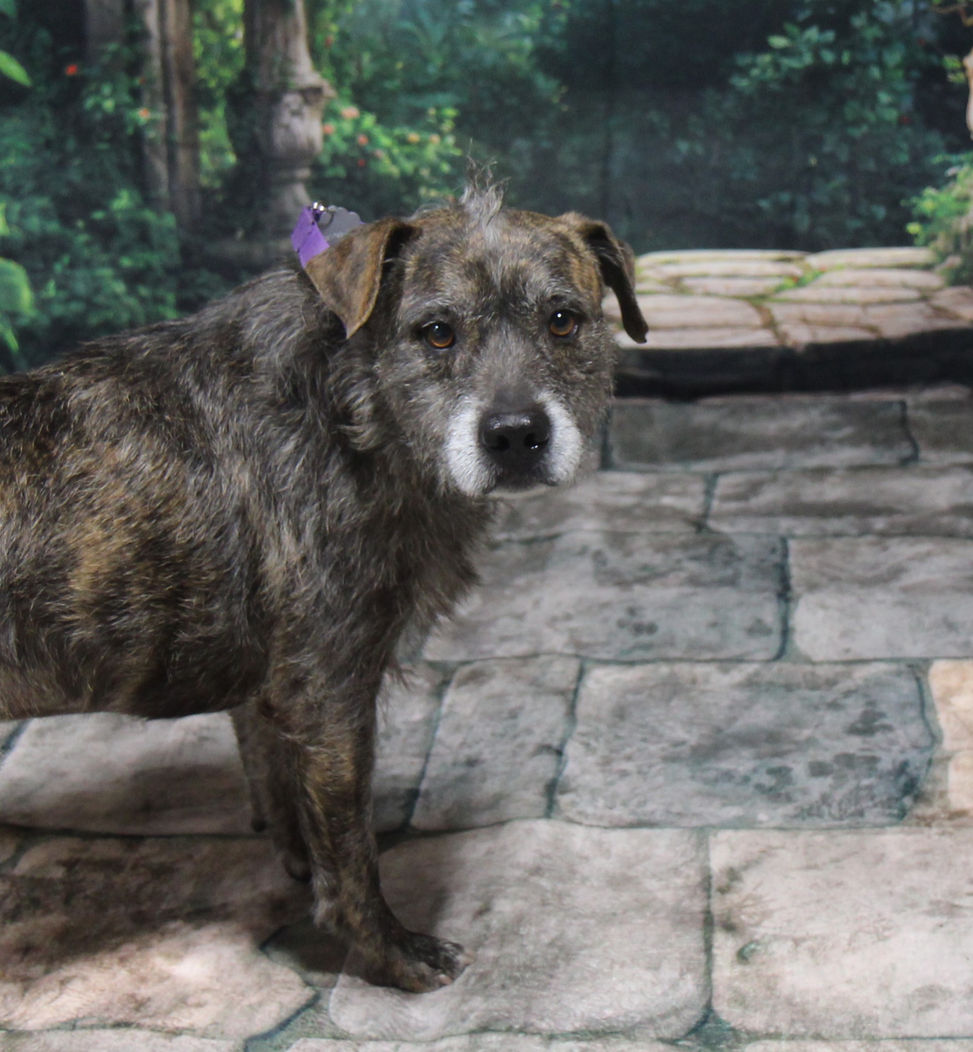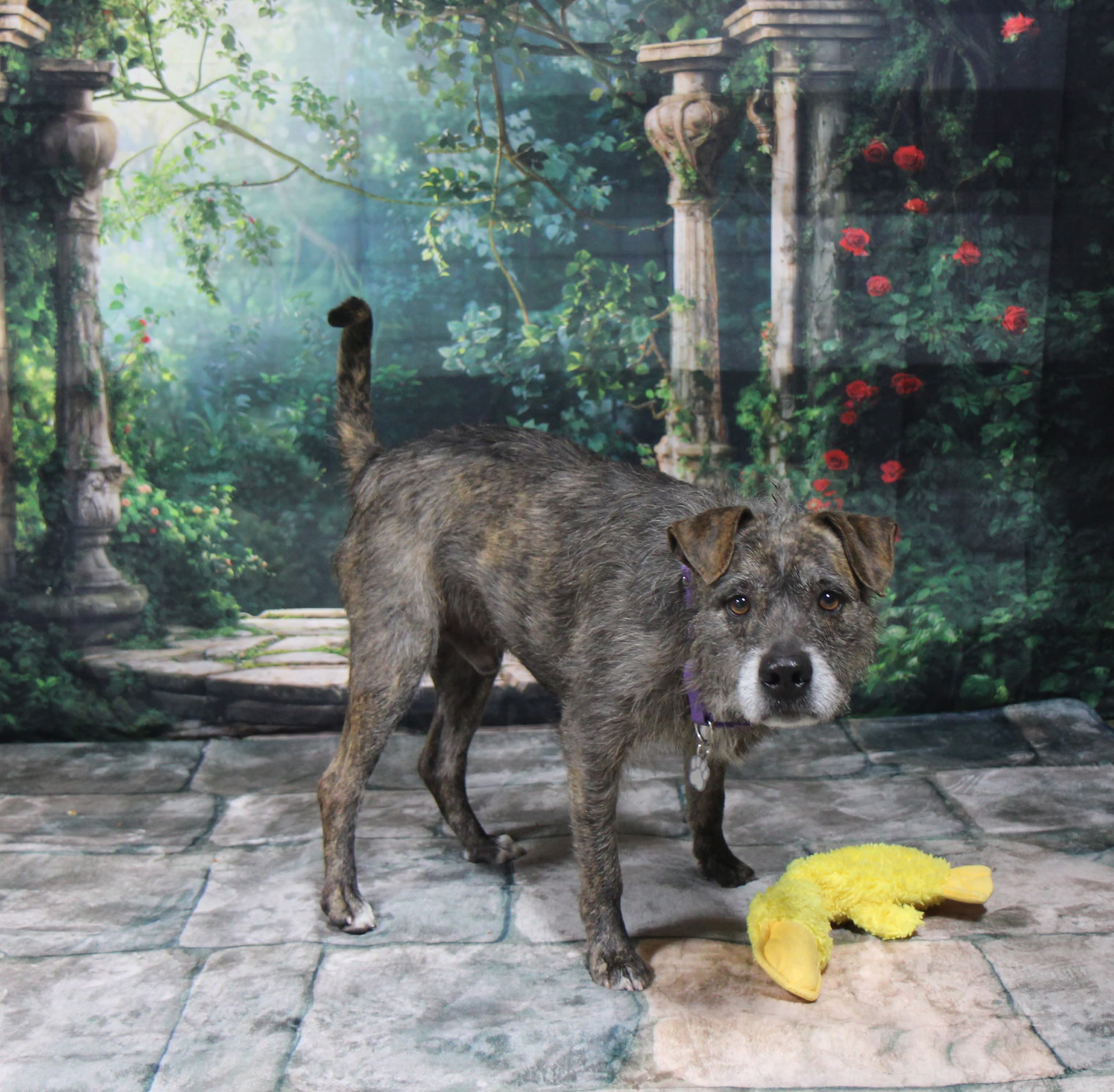 Dink is a 5-7 year old scruffy, wire-haired terrier mix weighing 37 pounds of pure personality.