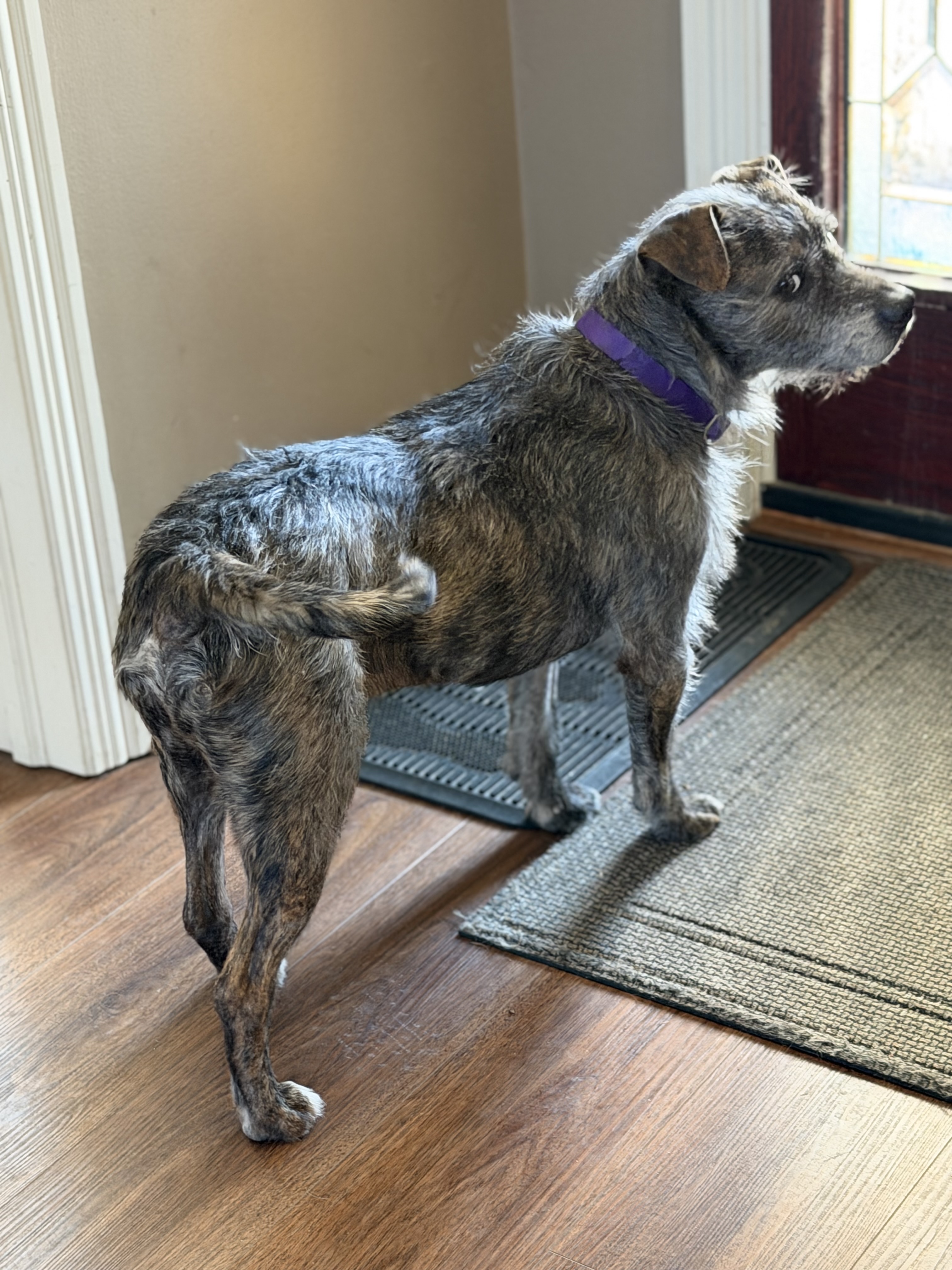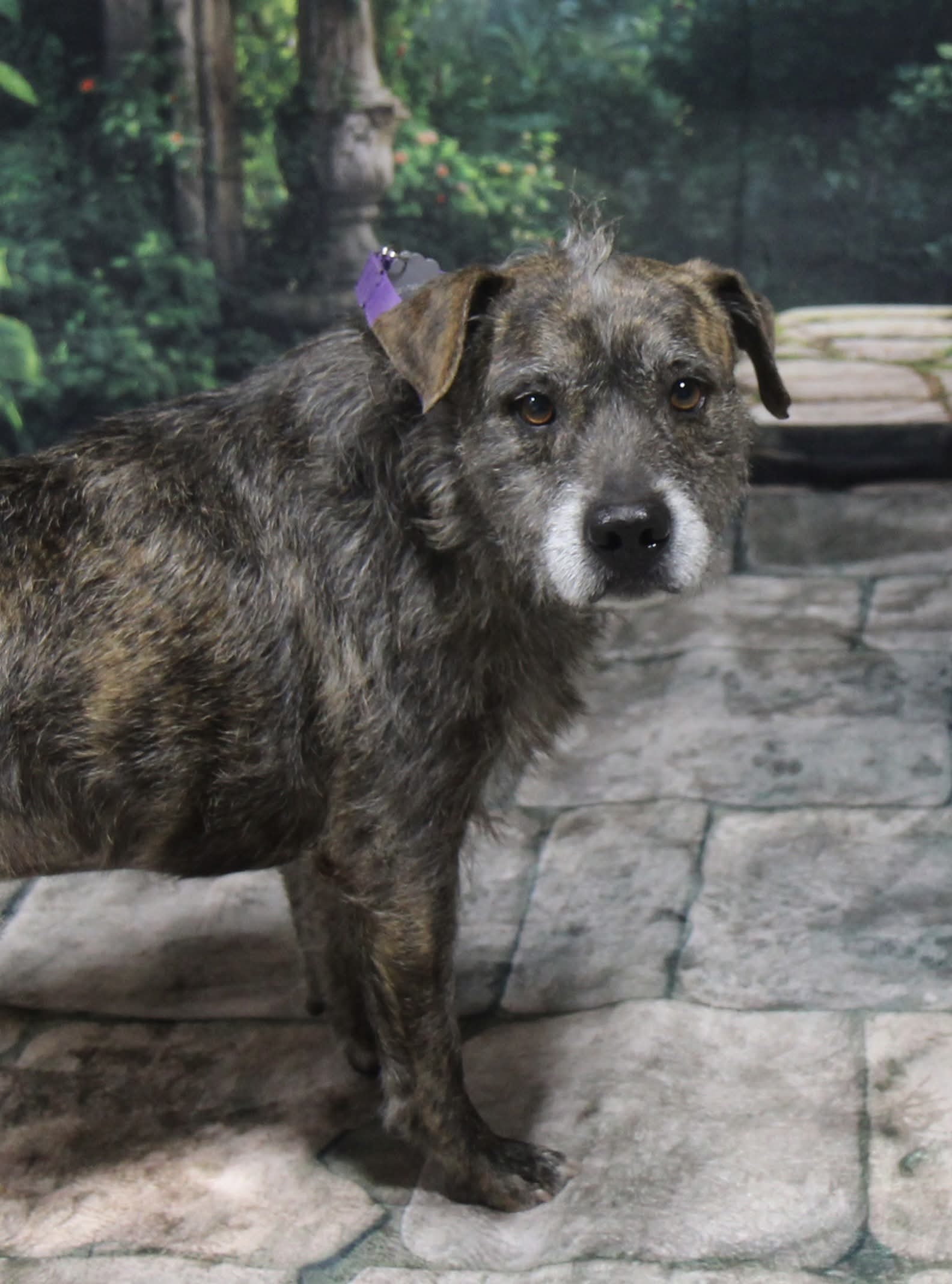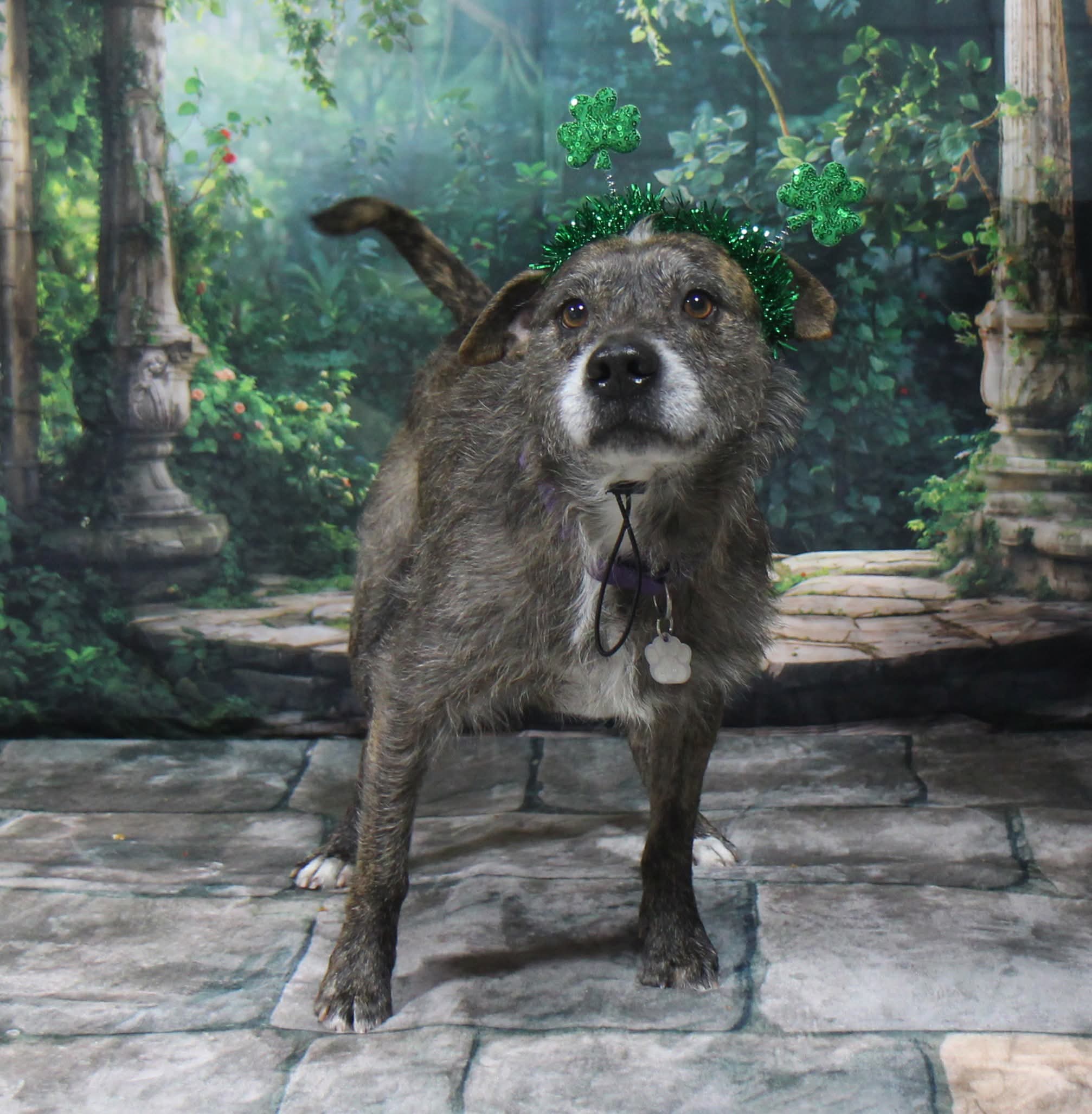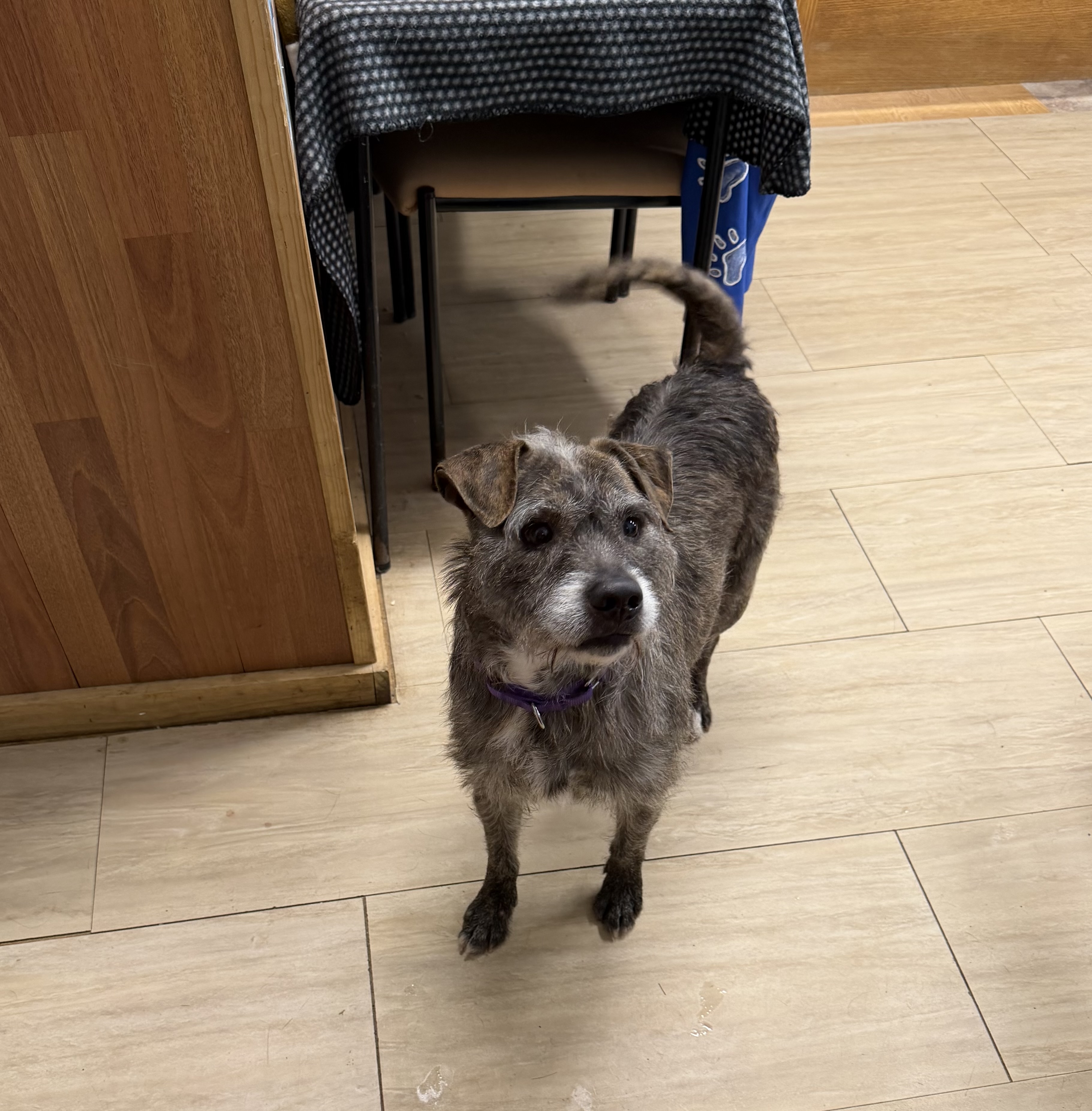 Dink is a 5-7 year old scruffy, wire-haired terrier mix weighing 37 pounds of pure personality.