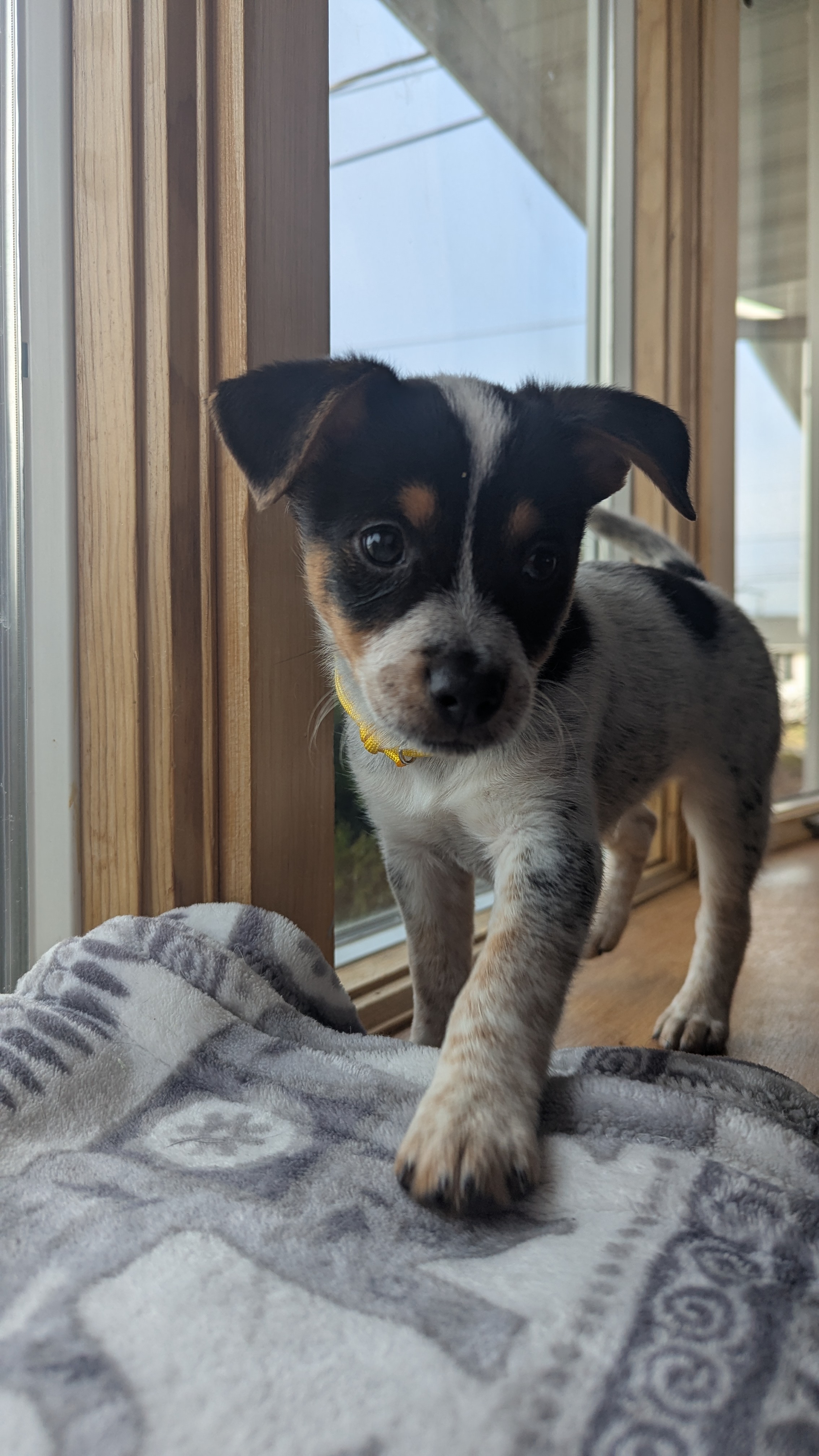 Training: Cyclone is still learning some basic training and would benefit from continued guidance and patience. Cyclone thrives in homes with plenty of space to explore and play. He enjoys having room to roam, stretch his legs, and satisfy his curious, playful nature, making a larger indoor or outdoor area ideal for him to stay happy and active. He’s also learning leash skills—traditional collars seem to bother him, so a harness might be more comfortable and help him feel more confident on walks. Cyclone has made great progress with potty training on pee pads and is starting to get the hang of going outside as well; he successfully went potty outside on a warmer day, and with more mild weather, outdoor potty training should become easier and more consistent.