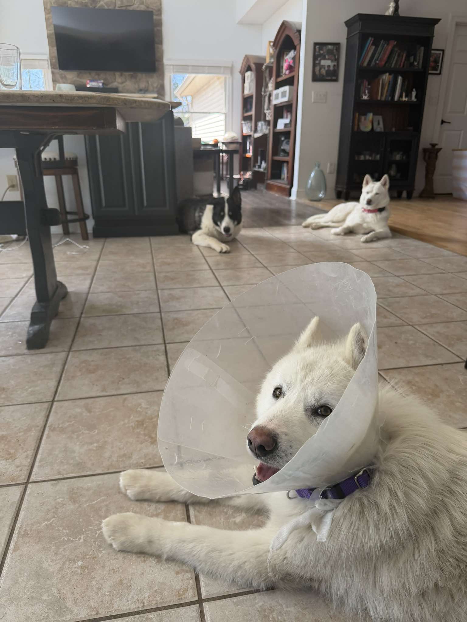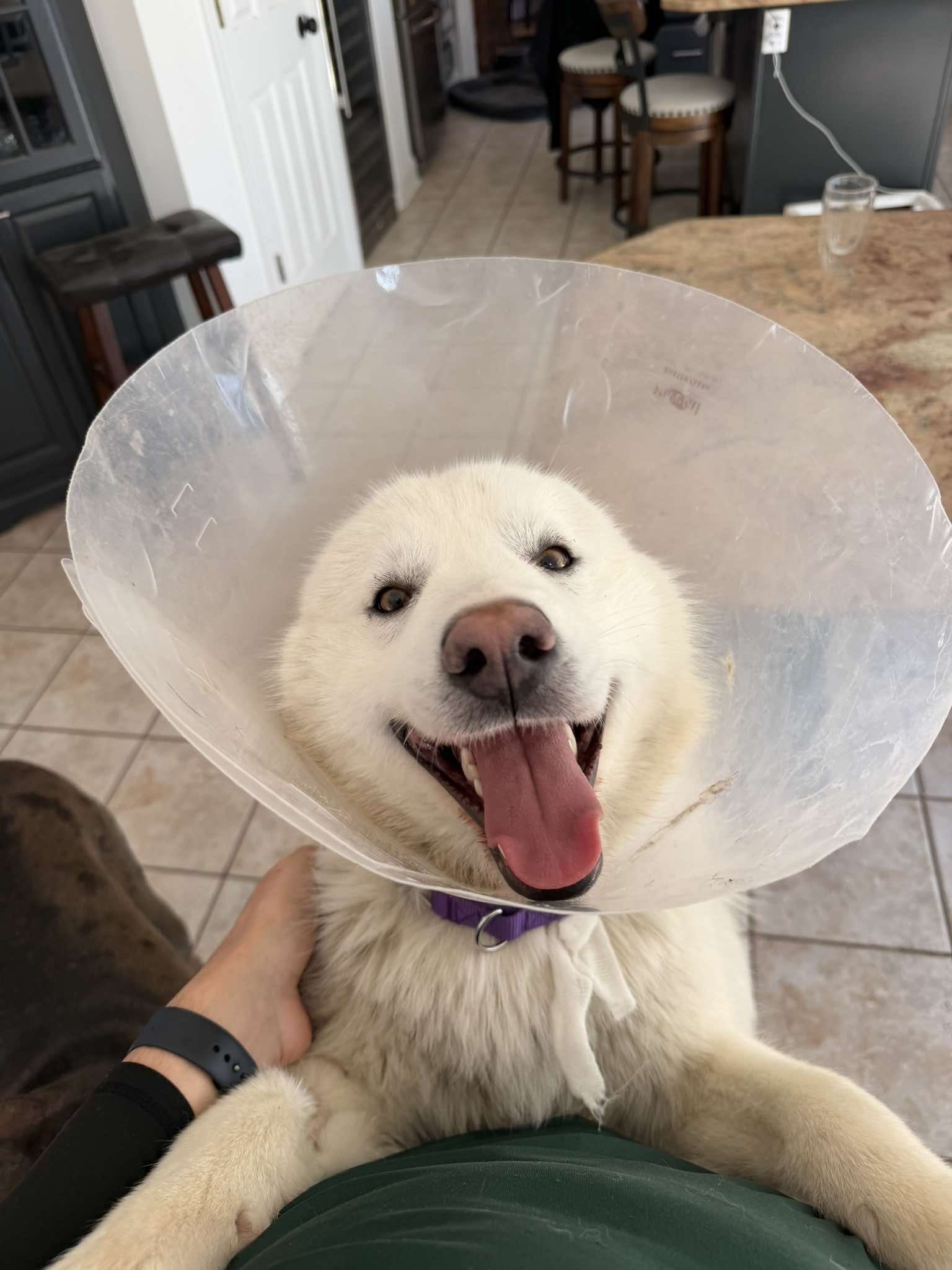 This handsome young pup was found as a stray, but you’d never guess it from his sweet and playful personality! Luria is a male white husky who loves to have fun and gets along great with other dogs.