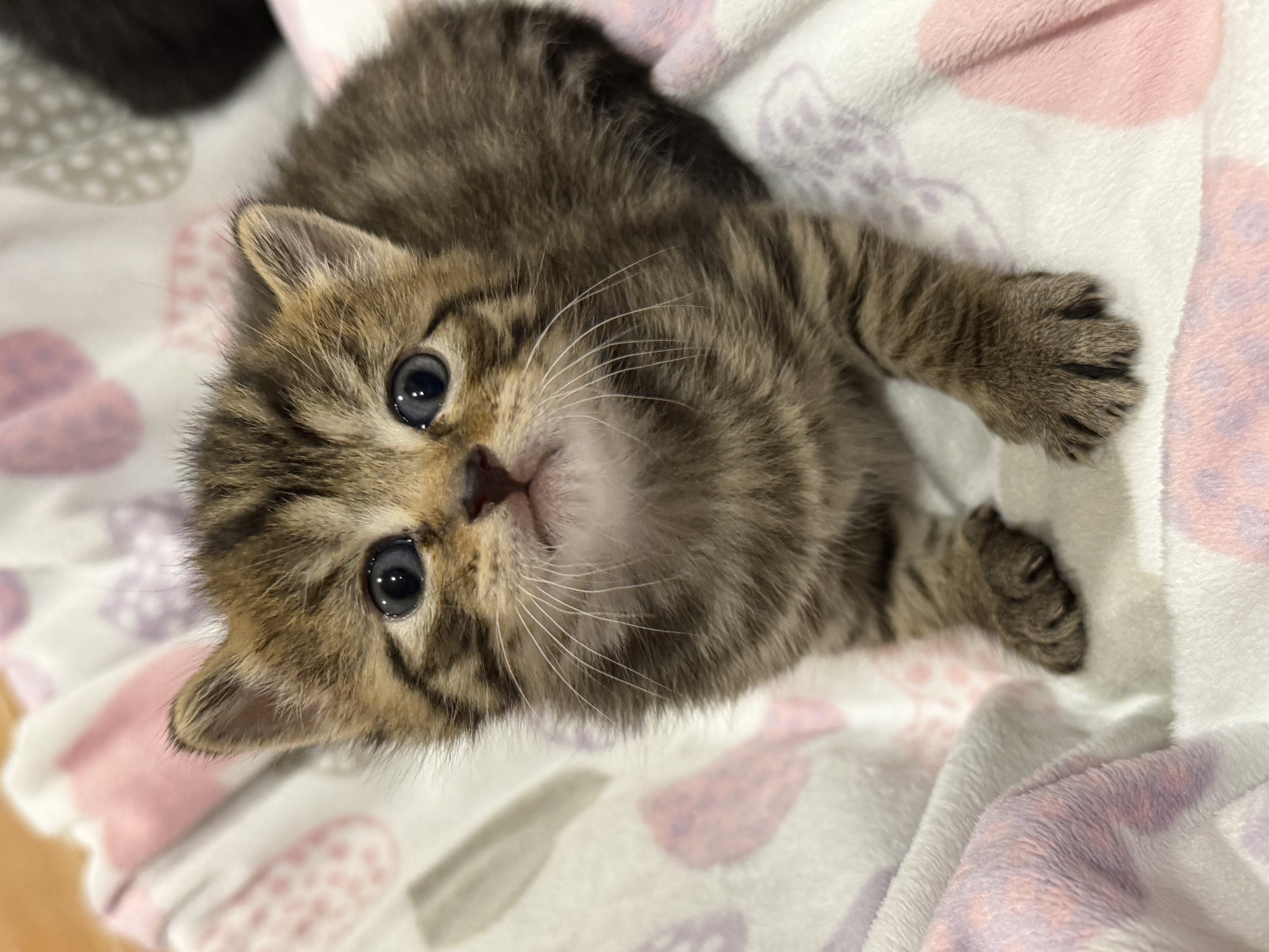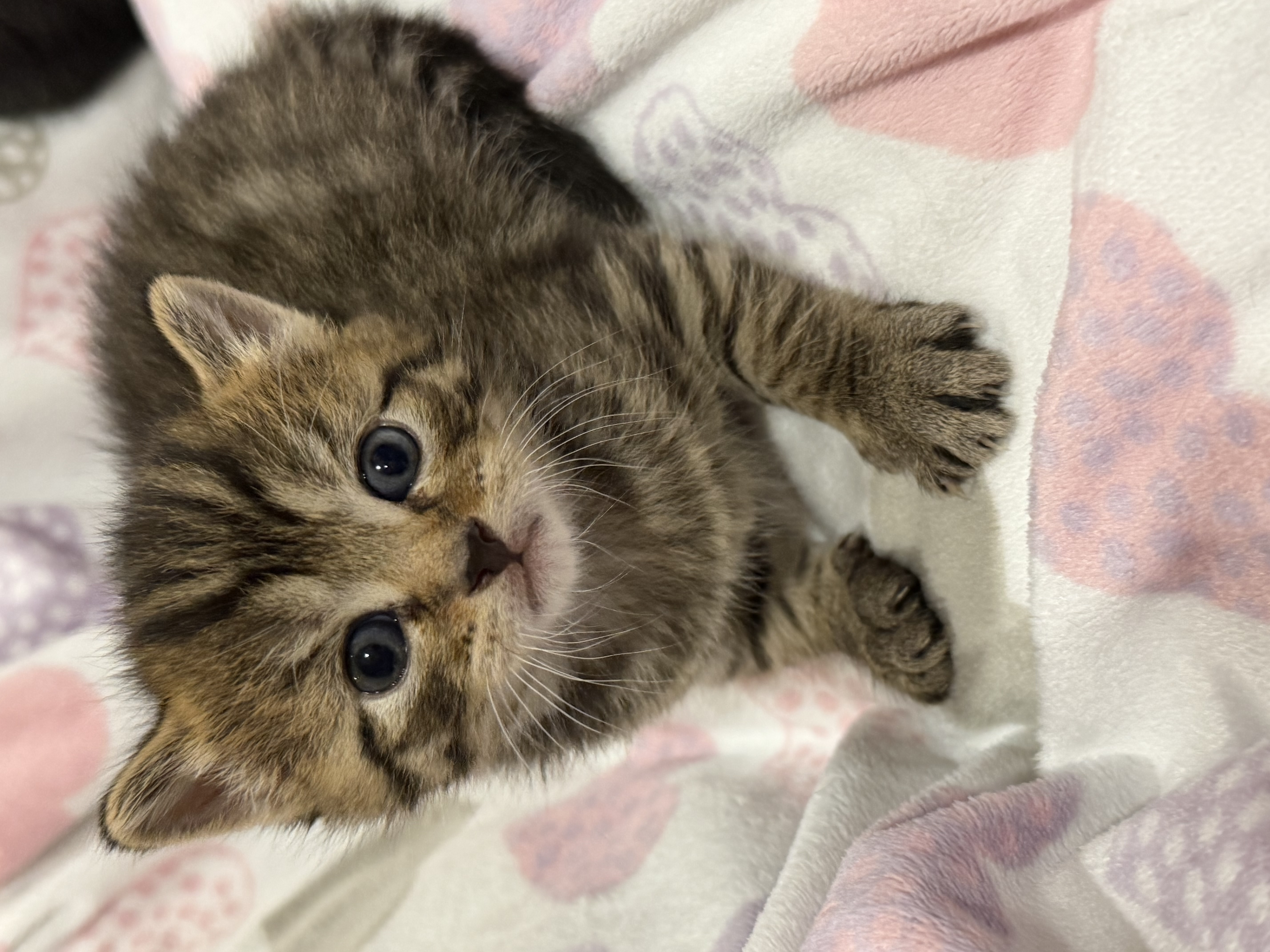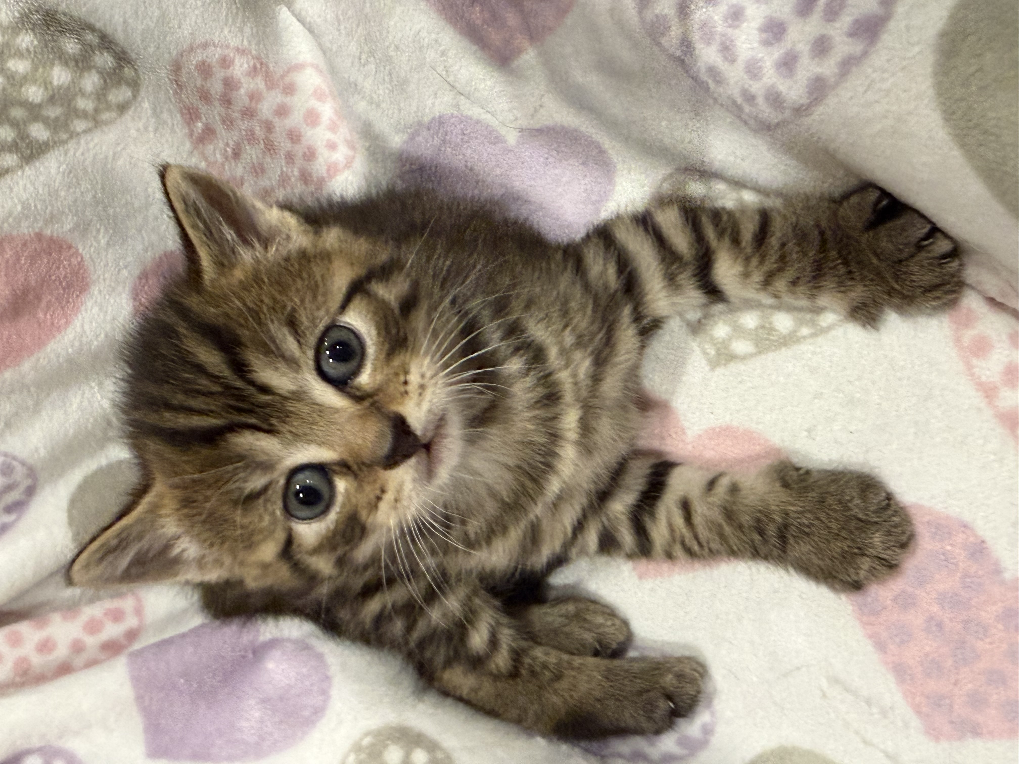 Meet our little kitten Milo – he is adorable and getting along well with his siblings Mochi and Maeve! 🐾