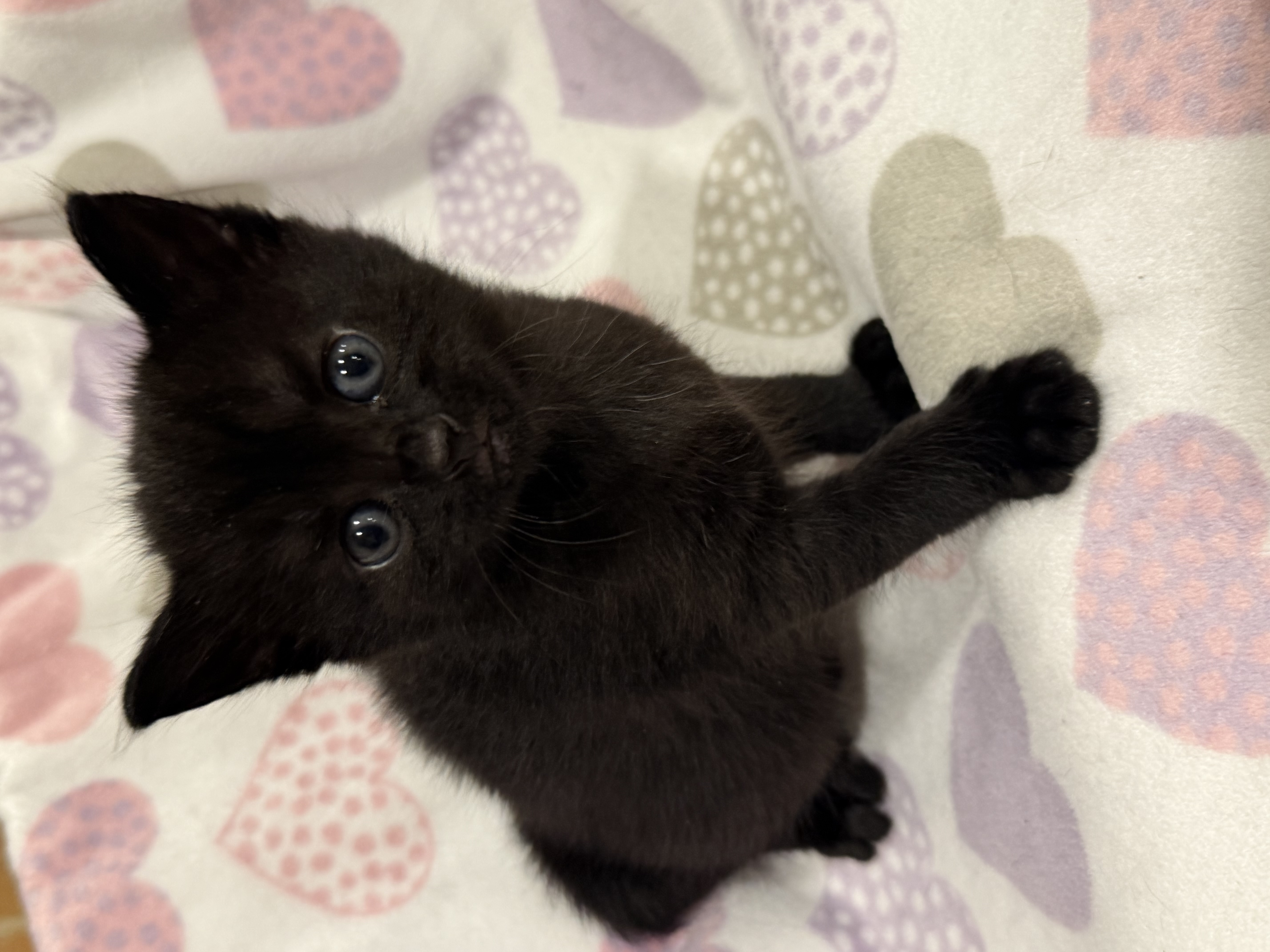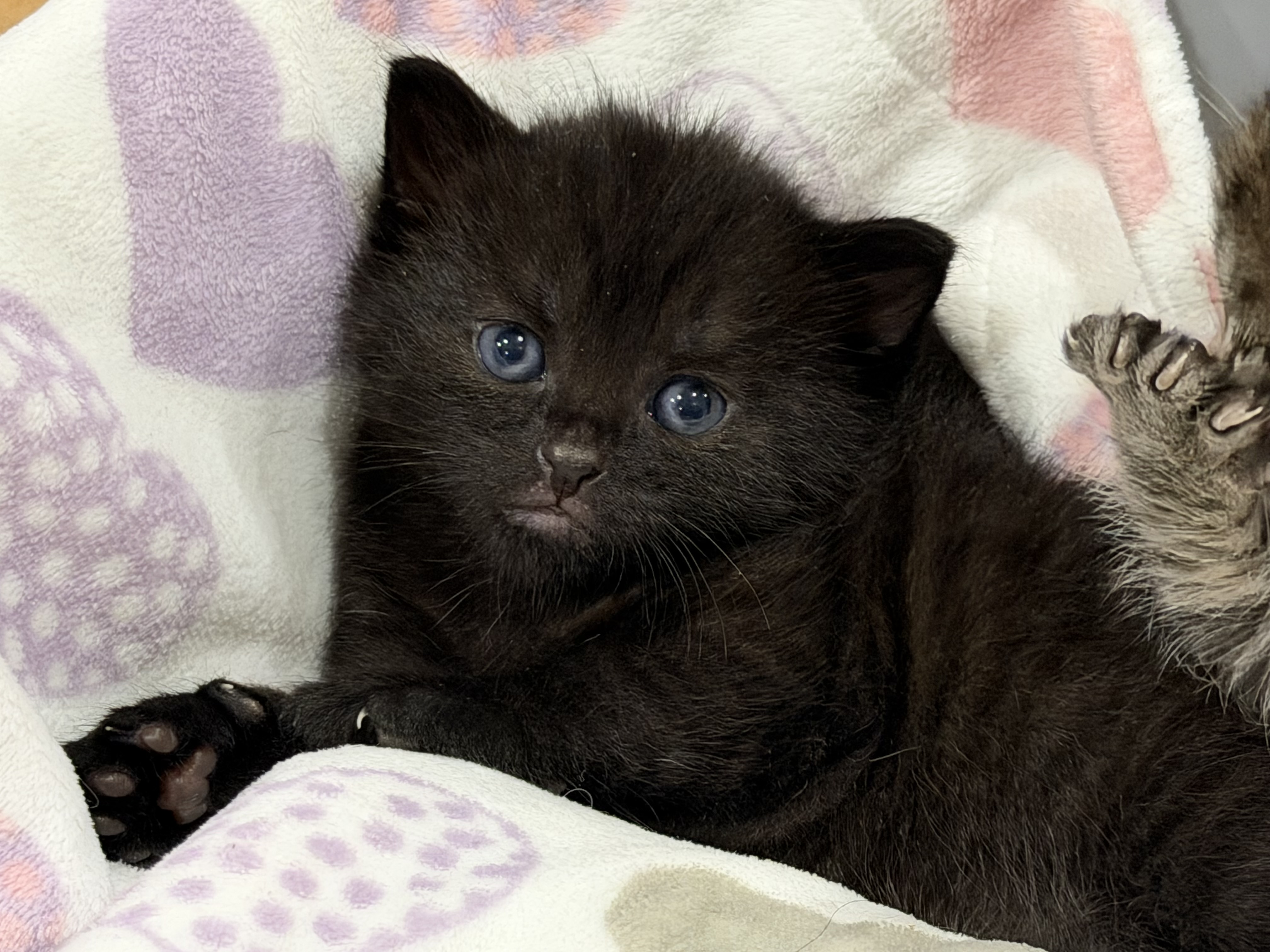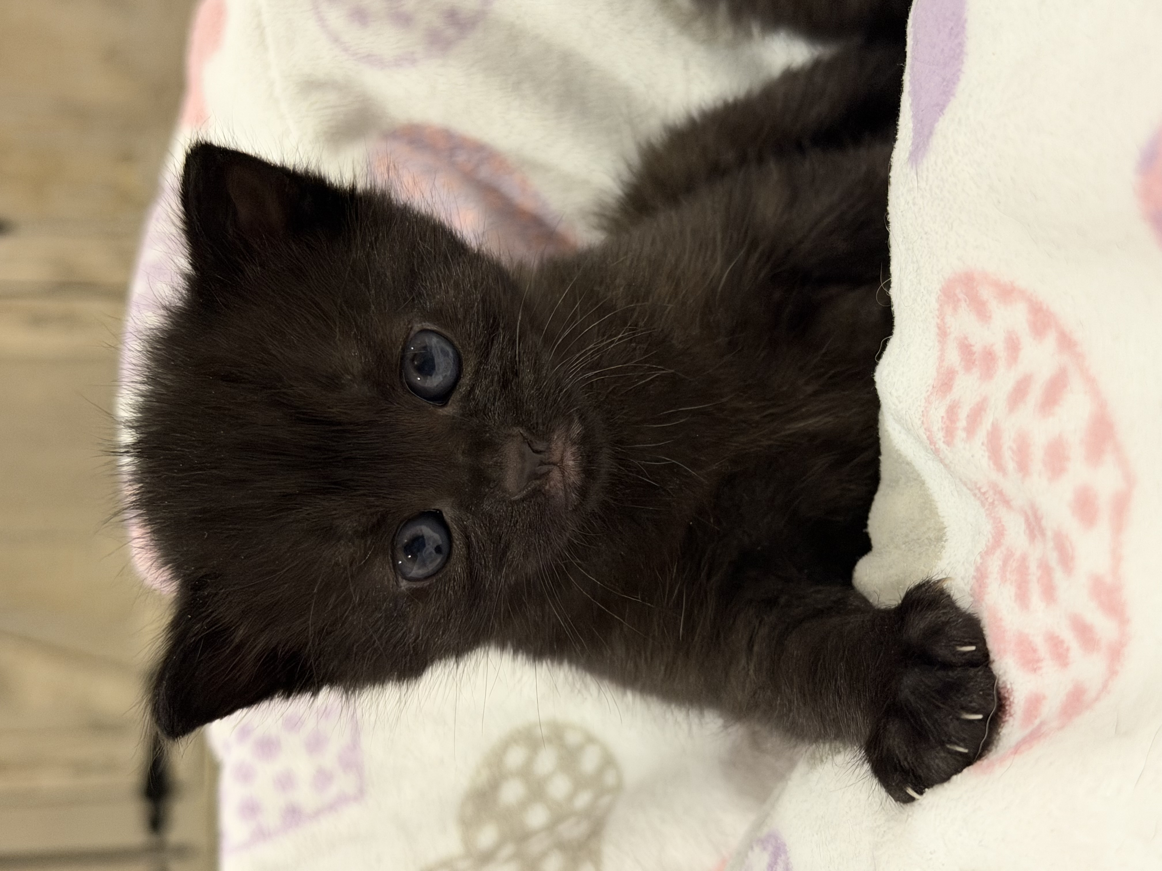 Meet our little kitten Mochi – she is just a few weeks old and is getting along well with her siblings Milo and Maeve! 🐾