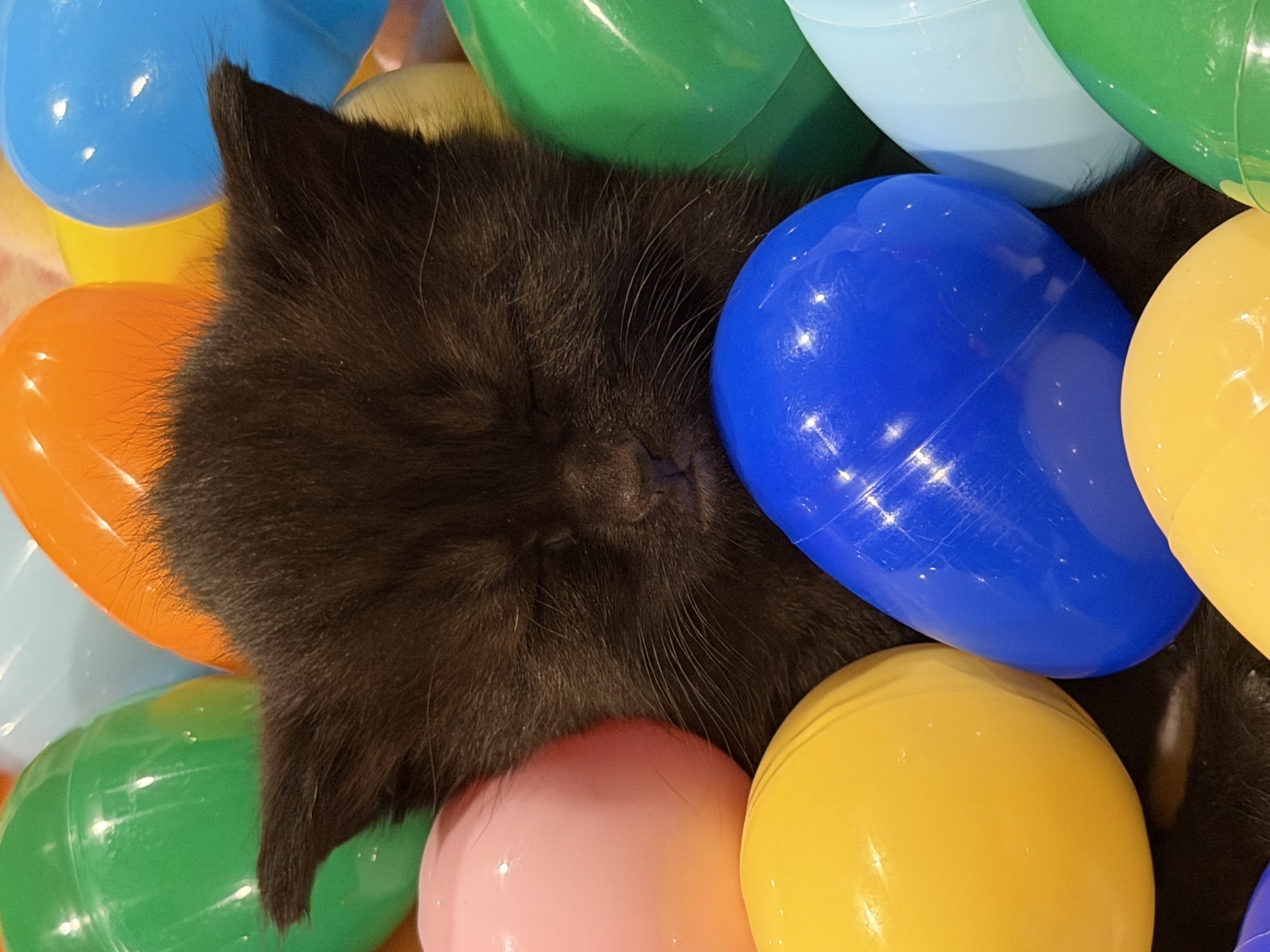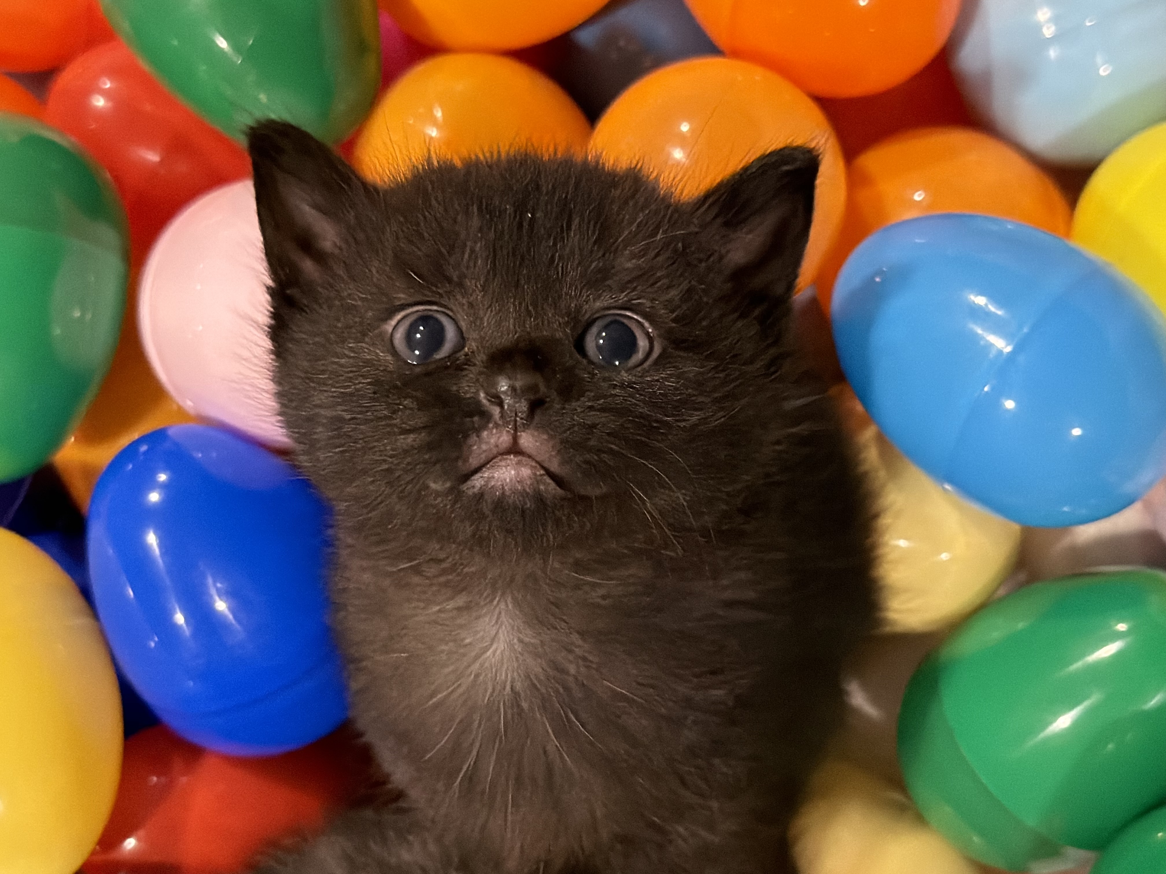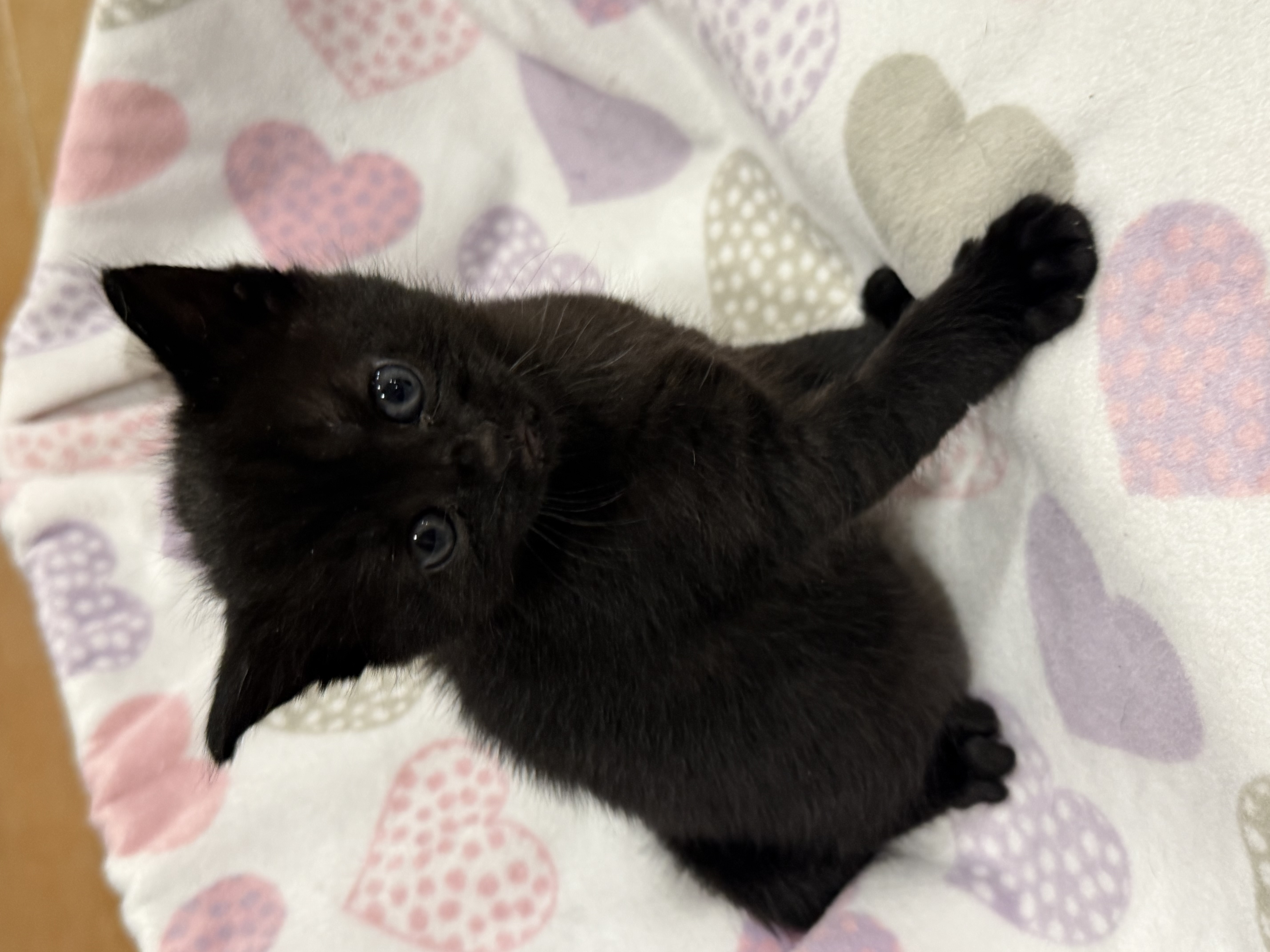 Meet our little kitten Mochi – she is just a few weeks old and is getting along well with her siblings Milo and Maeve! 🐾