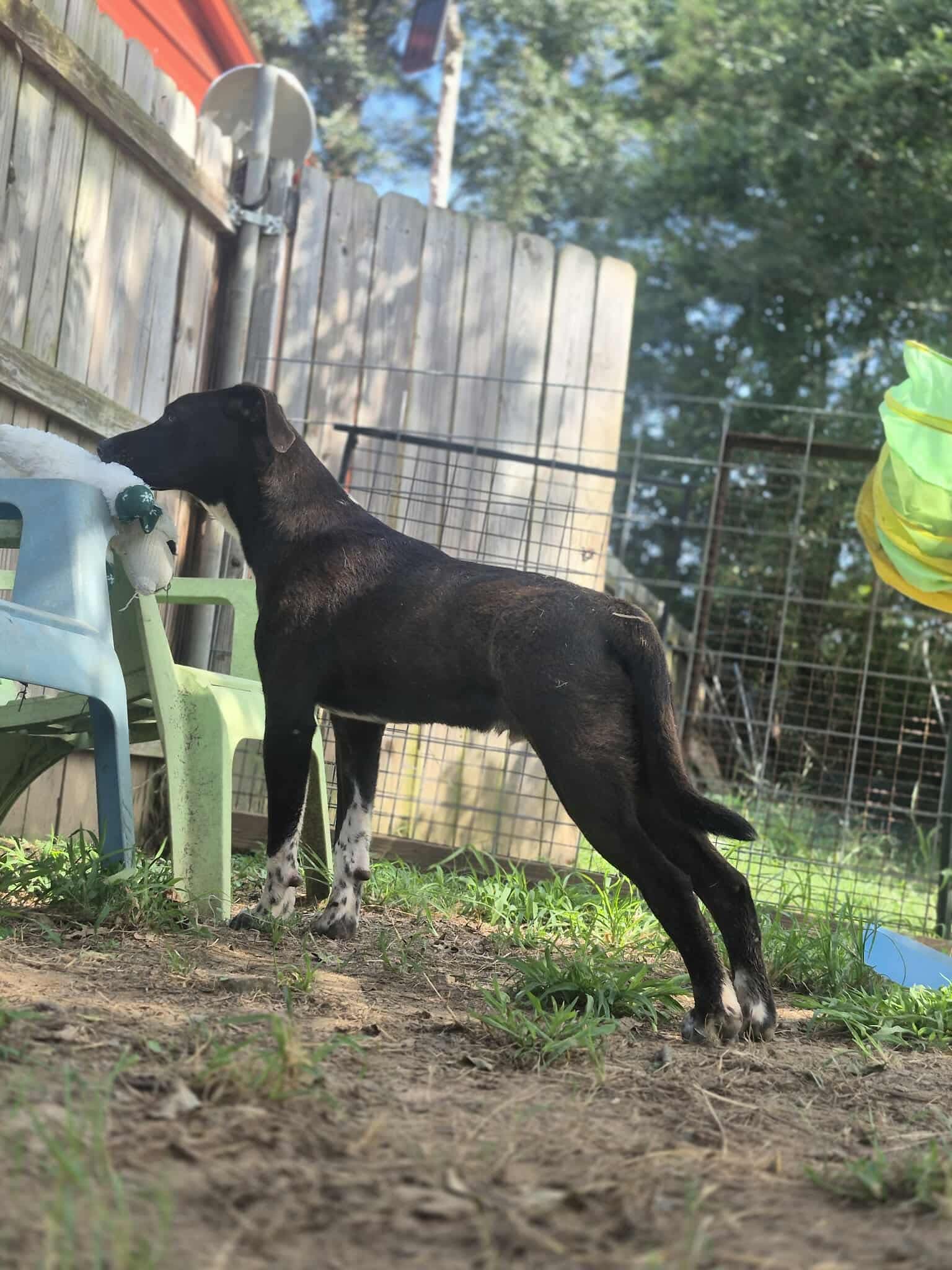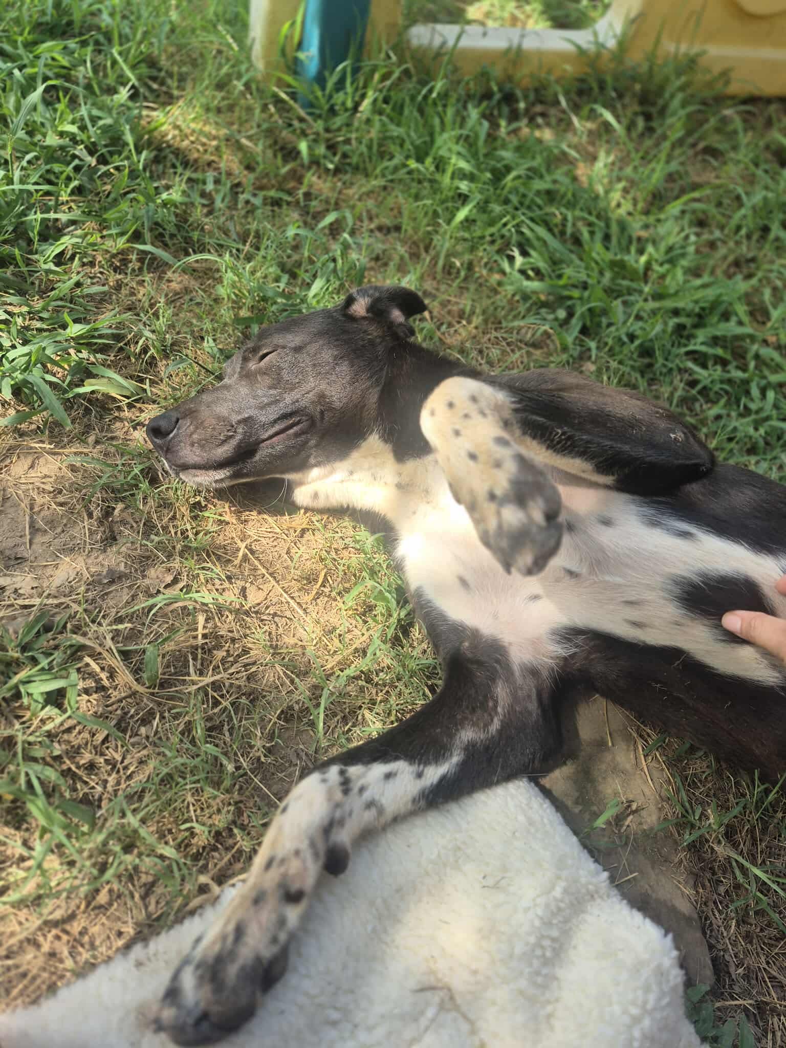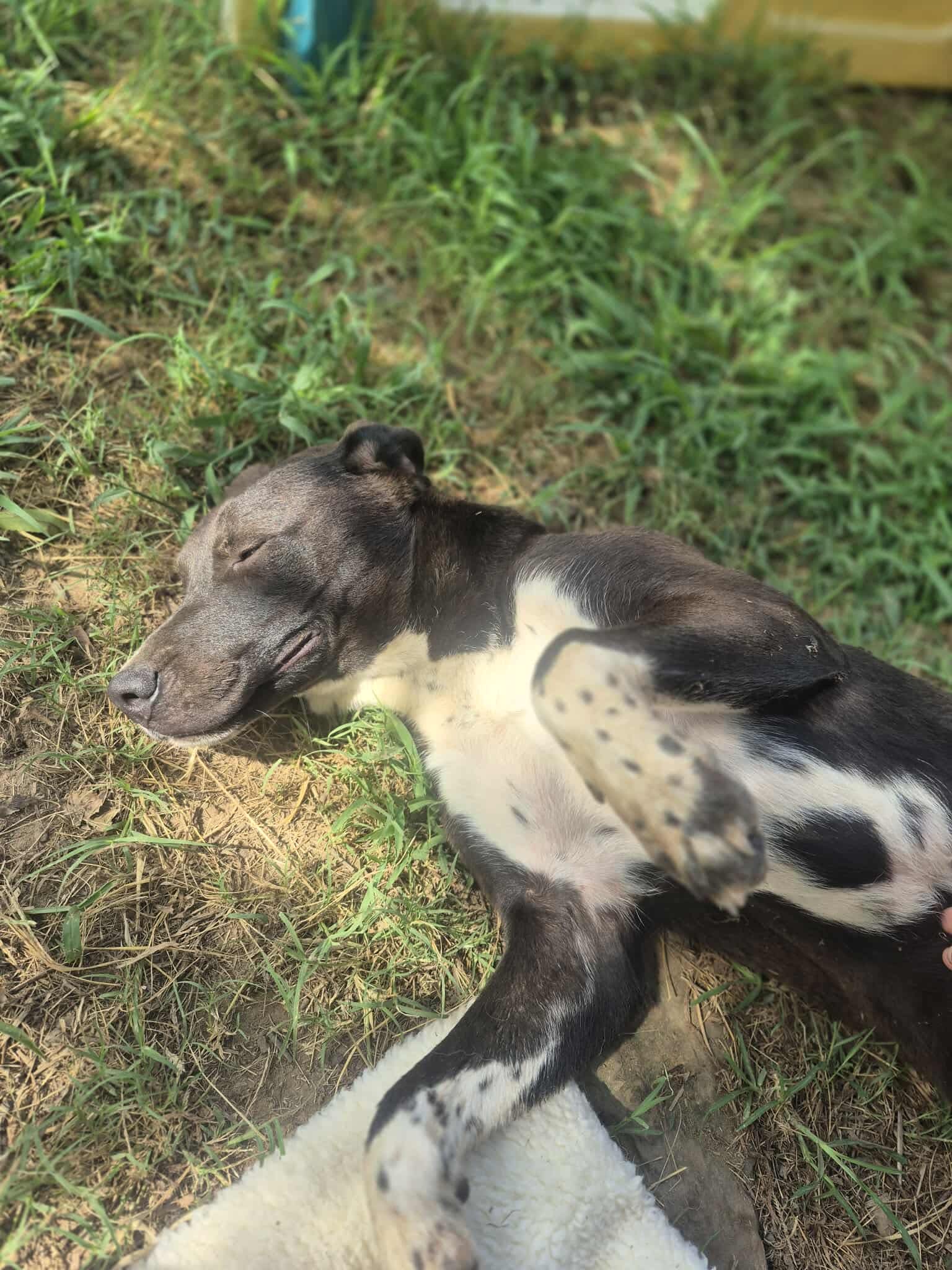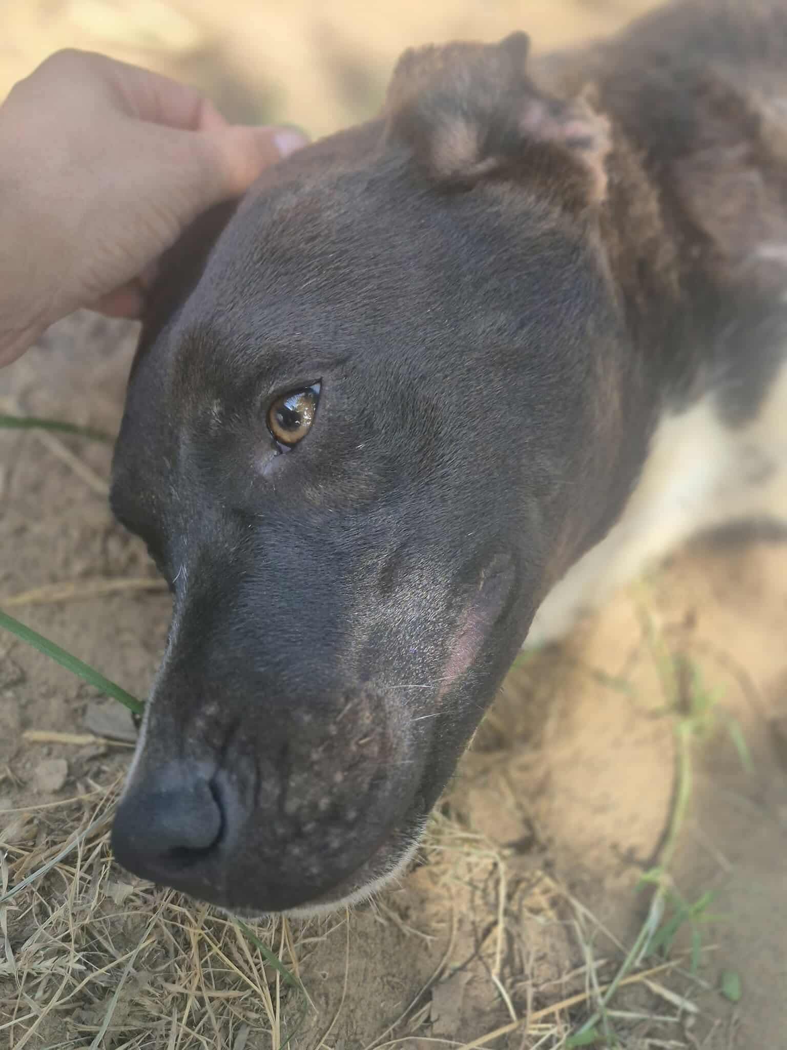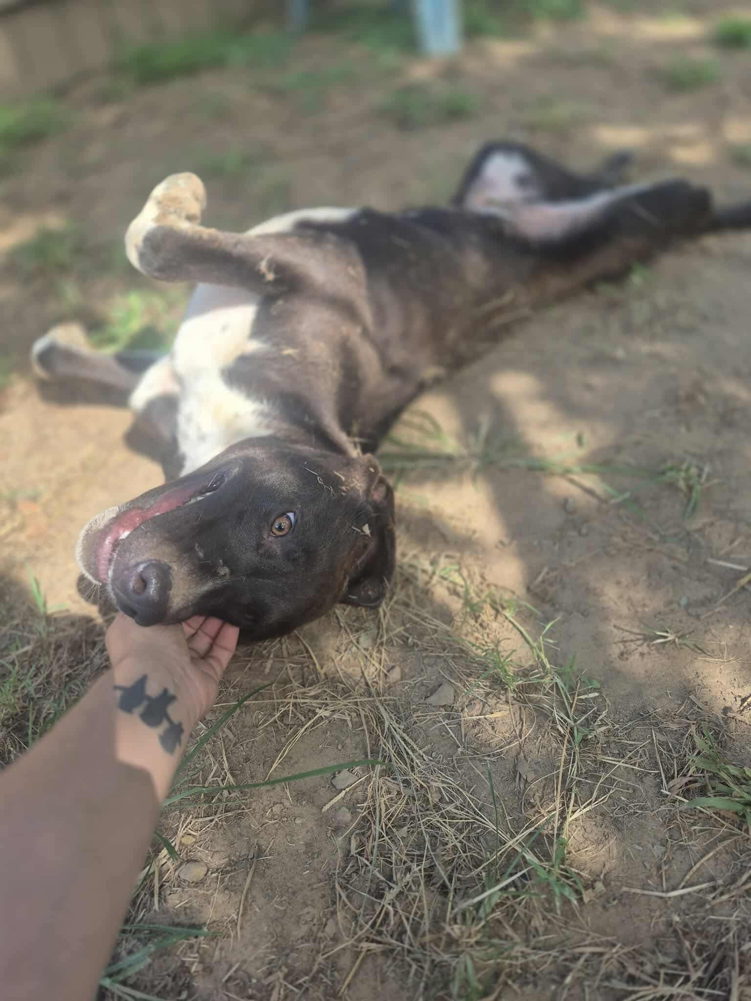 Super shy at first but once I had my hands on him , he melted to the ground and accepted all pets and love! He's a very low energy pup, and is VERY food motivated. He's just scared and needs someone to show him that love comes from all angles!